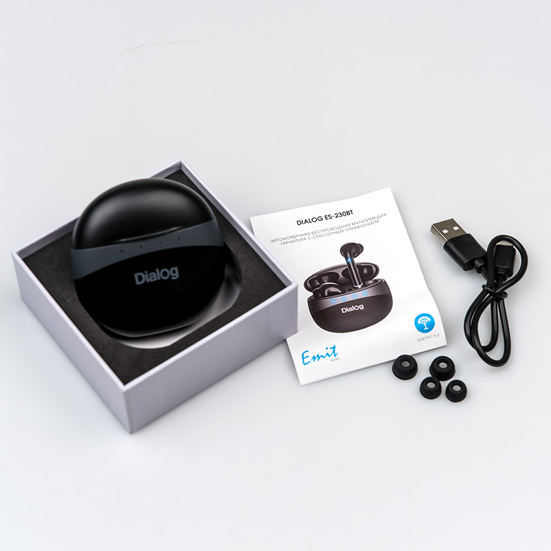 Внутриканальная Bluetooth гарнитура Dialog ES-230BT Black| Описание модели | Dialog ES-230BT это компактная эргономичная гарнитура со встроенным Bluetooth модулем версии 5.0 и аккумуляторной батареей. Гарнитура предназначена для использования со смартфонами, телефонами, планшетами и другими устройствами, способными использовать внешние устройства воспроизведения через интерфейс Bluetooth. Современный беспроводной стандарт Bluetooth 5.0 обеспечивает длительное время работы без подзарядки, увеличенный радиус уверенного приёма и высокую скорость соединения. Гарнитура подзаряжается от компактной переносной докстанции, когда не используется. При разговоре в режиме гарнитуры голос собесседника воспроизводится в обоих наушниках. Компактный и лёгкий контейнер удобен для переноски, для подзарядки контейнера используется современный разъём USB Type-C | | Технические характеристики | Модель перенесена в архив 02.02.2023 | | Модель: | ES-230BT Black | | Интерфейс/спецификация | Bluetooth | | Радиус уверенного приёма, м | Излучаемая мощность и радиус действия соответствует классу 2 | | Версия Bluetooth | 5.0 EDR | | Профили Bluetooth | Advanced Audio Distribution Profile (A2DP), Audio / Video Remote Control Profile (AVRCP), Headset Profile (HSP), Hands-Free Profile (HFP) | | Режимы работы | Беспроводные наушники; беспроводная гарнитура | | Тип аккумулятора | встроенный Li-Pol (и в наушниках и в крэдле - докстанции) | | Ёмкость аккумулятора, мАч | в наушниках 2*50 мА*ч, в крэдле - докстанции 400 мА*ч | | Длительность автономной работы | При разговоре и/или при проигрывании музыки до 6~7 часов (зависит от способа использования, интенсивности, громкости) | | Длительность автономной работы в режиме ожидания | до 100 часов | | Тип зарядного кабеля | USB | | Длительность полной зарядки аккумулятора, ч | около 1 часа для наушников и около 2 часов для докстанции-контейнера | | Индикация | Светодиодный индикатор режима работы и зарядки на наушниках и на докстанции (подробная информация в руководстве пользователя) | | Управление | Многофункциональная сенсорная кнопка на каждом наушнике | | Режим | стерео | | Размер динамика (мм) | 10 | | Сопротивление (Ом) | 32 | | Чувствительность (дБ/мВт) | 108 | | Частотный диапазон (Гц - кГц) | 20-20 | | Акустическое оформление | вкладыши | | Чашки | пластик | | Кабель | Кабель USB A - USB Type-C для подзарядки крэдла (докстанции) | | Тип разъема | USB Type-C в докстанции | | Вес наушников без кабеля (г.) | Докстанция: 38 г, наушники: 2*3 г | | Микрофон | | | Тип микрофона | конденсаторный | | Режим | стерео | | Конструкция микрофона | два микрофона (по одному в каждом вкладыше) | | Сопротивление (КОм) | 0,12 | | Чувствительность (дБ) | -42 ± 3 |
