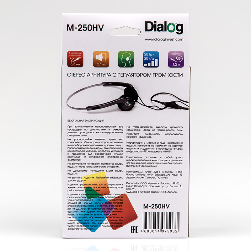 Гарнитура с металлическим оголовьем и регулятором громкости Dialog M-250HV