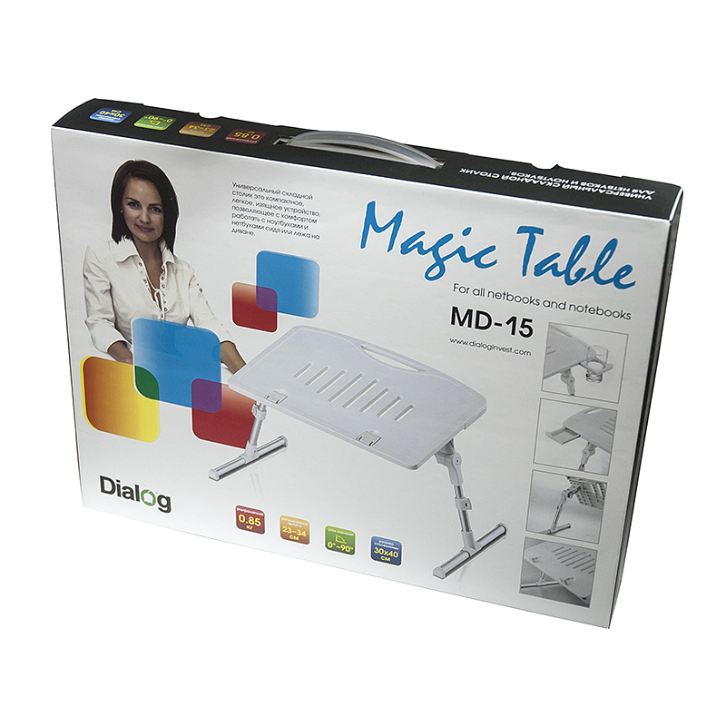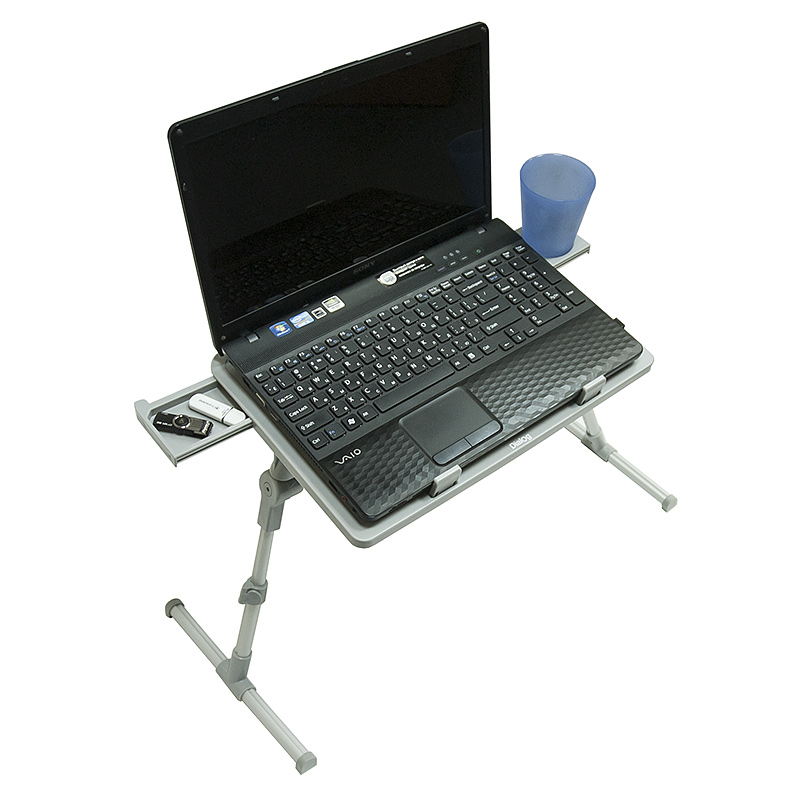 | Модель | MD-15 Gray | | Крепление (установка) | Оптимально для работы на кресле или диване | | Цвет | Серый | | Материал | Пластик + алюминий | | Углы наклона | 0° ~ 90° | | Размер столешницы | 30*40 см | | Регулируемый угол наклона | Да | | Регулируемая высота | Да, выдвижные алюминиевые ножки, высота от 23 до 34 см. | | Нескользящий | Да. Резиновые нескользящие наконечники ножек. | | Дополнительные особенности | Столик оборудован выдвижным подстаканником и выдвижным лотком для мелких предметов; фиксаторами положения ноутбука для предотвращения его соскальзывания; Столик компактно собирается для хранения и удобно переносится за специальную ручку; Столешница с прорезями для лучшей вентиляции дна ноутбука. | | Вес, гр | 850 | | Размеры, мм | 300*400 | | Комплектация | Столик, гарантийный талон, упаковка | | Код ТНВЭД | 3926909707 |