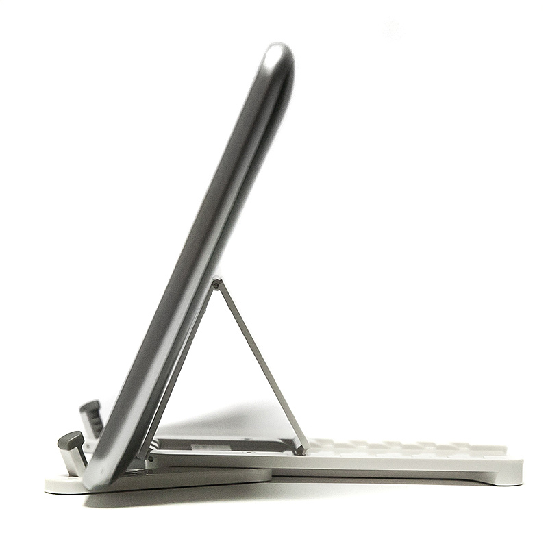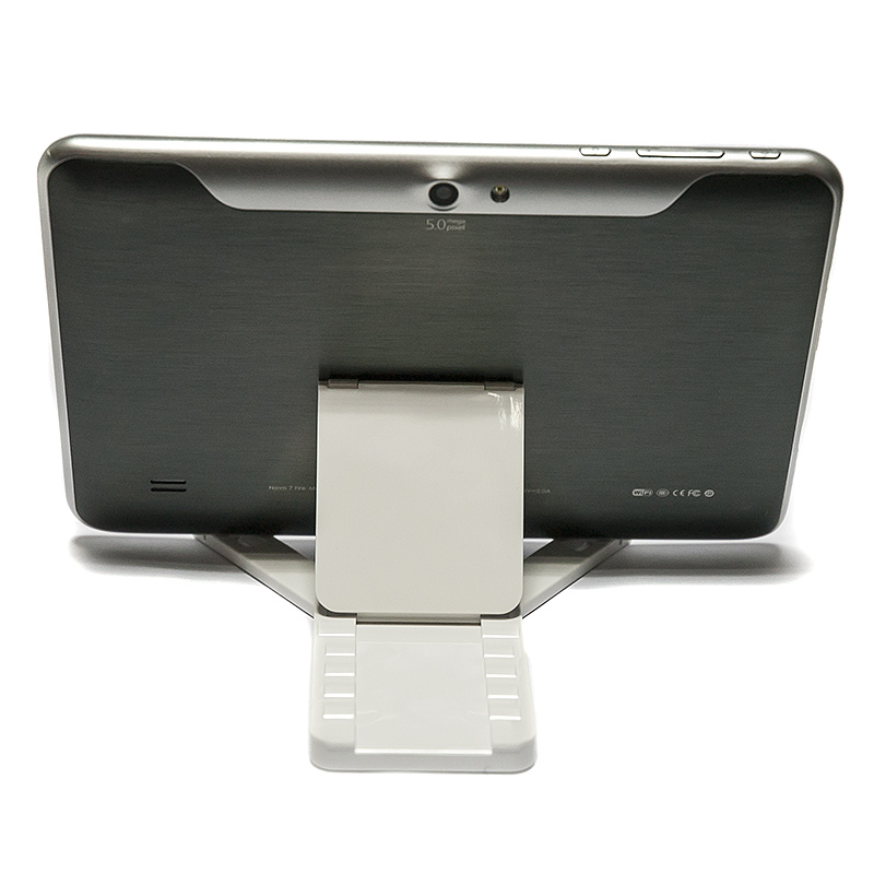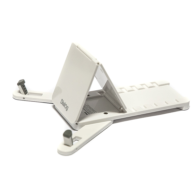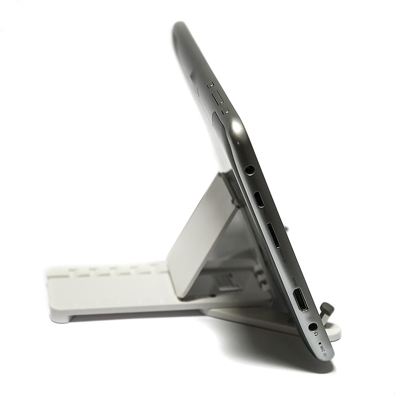 Это компактное, легкое, изящное устройство, позволяющее устанавливать мобильные устройства на горизонтальные поверхности так, чтобы обеспечить их комфортное использование сидящему человеку. Подготовьте держатель в несколько движений, установите в него планшет или смартфон и вот уже ваш электронный помощник нажёжно размещён на столе с развёрнутым под оптимальным углом экраном. Держатель очень легок и компактен, он без труда помещается как в сумочке, так и в кармане. Держатель подойдёт как для самых миниатюрных телефонов, так и для десятидюймовых планшетов. Специальные резиновые вставки на нижней поверхности устройства препятствуют скольжению держателя по столу. |
