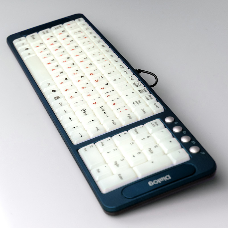 | Модель | KK-L04U Blue | | Интерфейс | USB | | Корпус | Синий матовый пластик. Белые клавиши, черная латиница, красная кириллица. | | Количество клавиш | 109 | | Клавиши Windows | да | | Мультимедиа-клавиши | да, 4 клавиши над цифровым блоком | | Подсветка клавиш | да. Клавиши подсвечиваются полностью, цвет - голубой | | Регулируемый угол наклона | клавиатуру можно приподнять подклеивающимися резиновыми полусферами (в комплекте) | | Длина кабеля, м | 1.5 | | Габаритные размеры (В*Ш*Г, мм) | 415*120*15 | | Вес (кг) | 0,430 | | Комплект поставки | клавиатура, самоклеящиеся резиновые ножки, гарантийный талон, упаковка | | Код ТНВЭД | 8471606000 | | Гарантийный срок, мес. | 6 | | Cрок службы, мес. | 24 |