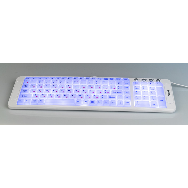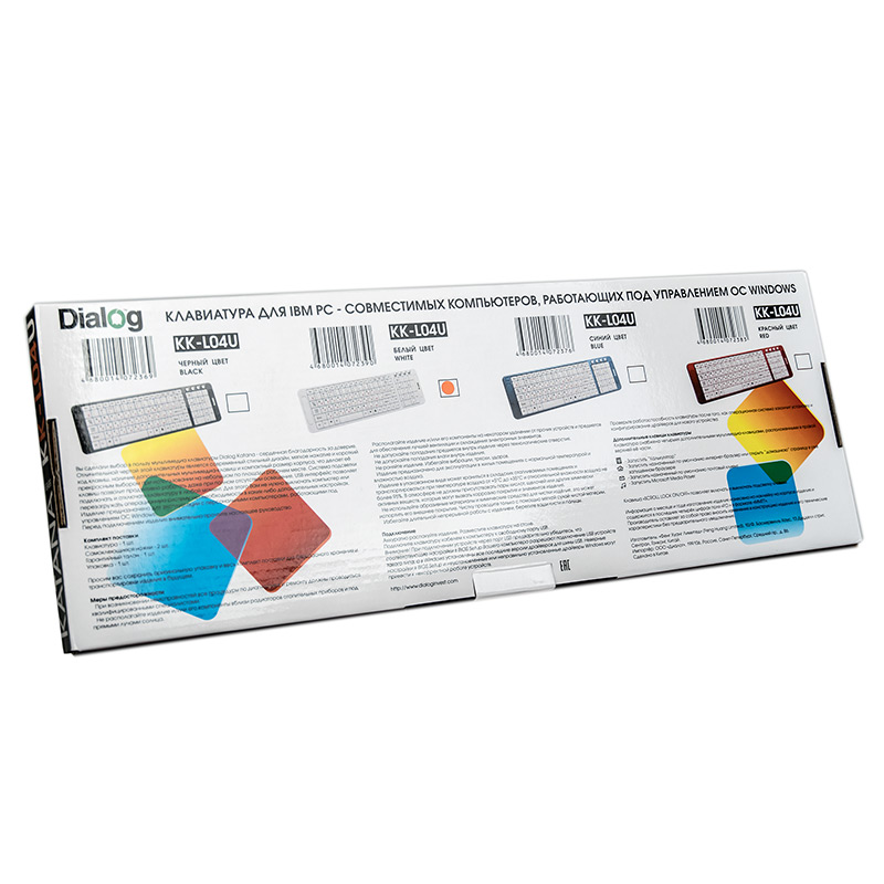 | Модель | KK-L04U White | | Интерфейс | USB | | Корпус | Белый матовый пластик. Белые клавиши, черная латиница, красная кириллица. | | Количество клавиш | 109 | | Клавиши Windows | да | | Мультимедиа-клавиши | да, 4 клавиши над цифровым блоком | | Подсветка клавиш | да. Клавиши подсвечиваются полностью, цвет - голубой | | Регулируемый угол наклона | клавиатуру можно приподнять подклеивающимися резиновыми полусферами (в комплекте) | | Длина кабеля, м | 1.5 | | Габаритные размеры (В*Ш*Г, мм) | 415*120*15 | | Вес (кг) | 0,430 | | Комплект поставки | клавиатура, самоклеящиеся резиновые ножки, гарантийный талон, упаковка | | Код ТНВЭД | 8471606000 | | Гарантийный срок, мес. | 6 | | Cрок службы, мес. | 24 |