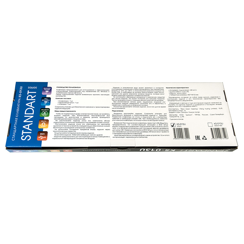 | Модель | KS-013U Black | | Интерфейс | USB | | Корпус | черный матовый пластик | | Количество клавиш | 104 | | Клавиши Windows | да | | Регулируемый угол наклона | да | | Длина кабеля, м | 1,5 | | Габаритные размеры (В*Ш*Г, мм) | 445*142*22 | | Вес (кг) | 0.440 | | Комплект поставки | клавиатура, гарантийный талон, упаковка | | Код ТНВЭД | 8471606000 | | Гарантийный срок, мес. | 6 | | Cрок службы, мес. | 24 |