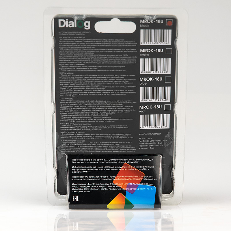 | Для беспроводной мыши Dialog MROK-18U Black нет руководства пользователя | | Для беспроводной мыши Dialog MROK-18U Black нет драйверов и программного обеспечения, либо они не требуются | | Для беспроводной мыши Dialog MROK-18U Black нет дополнительных фотографий | | Для беспроводной мыши Dialog MROK-18U Black нет фотографий с прозрачной подложкой | | Сервисные центры | | Гарантия Dialog |