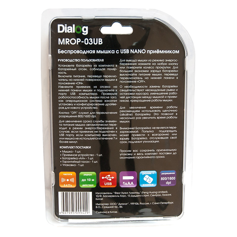 | Для беспроводной мыши Dialog MROP-03UB нет руководства пользователя | | Для беспроводной мыши Dialog MROP-03UB нет драйверов и программного обеспечения, либо они не требуются | | Для беспроводной мыши Dialog MROP-03UB нет дополнительных фотографий | | Для беспроводной мыши Dialog MROP-03UB нет фотографий с прозрачной подложкой | | Сервисные центры | | Гарантия Dialog |