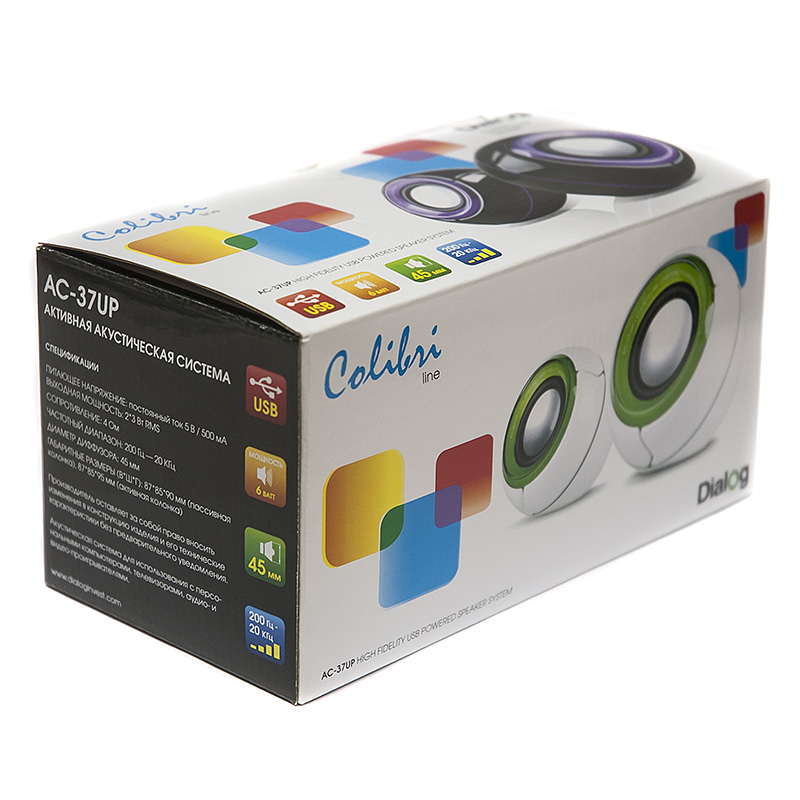 Компактная акустическая стереосистема с питанием от USB Dialog Colibri AC-37UP White-Green