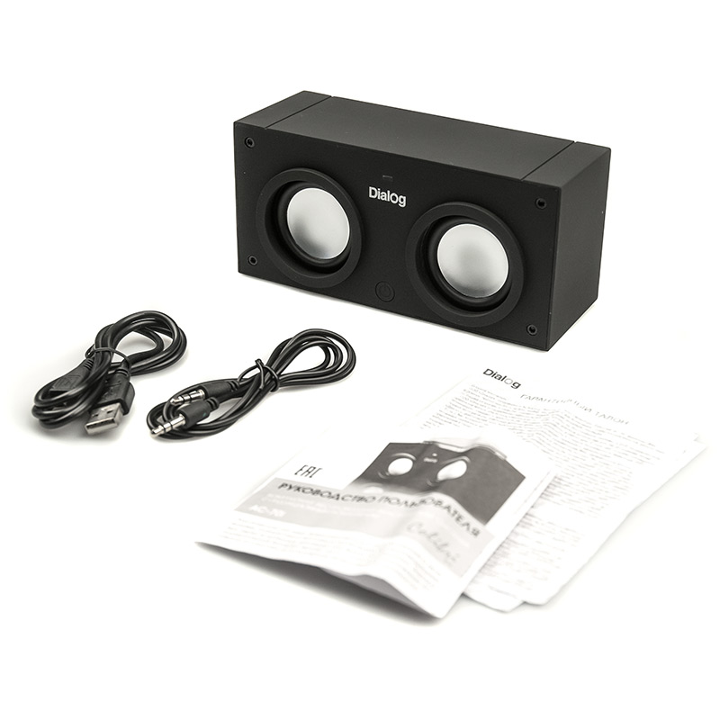 Комплект поставкибеспроводная акустическая система со встроенным аккумулятором, упаковка, гарантийный талон, руководство пользователя, кабель питания USB, кабель для подключения к источнику сигнала миниджек 3.5 мм - миниджек 3.5 мм