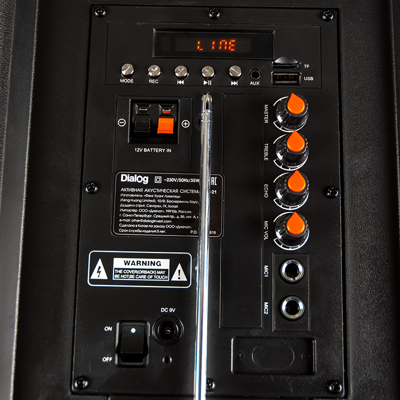 Продукция Dialog :: Колонки Dialog AO-21 - Портативная акустическая система c караоке, Bluetooth, SD, USB и FM радио