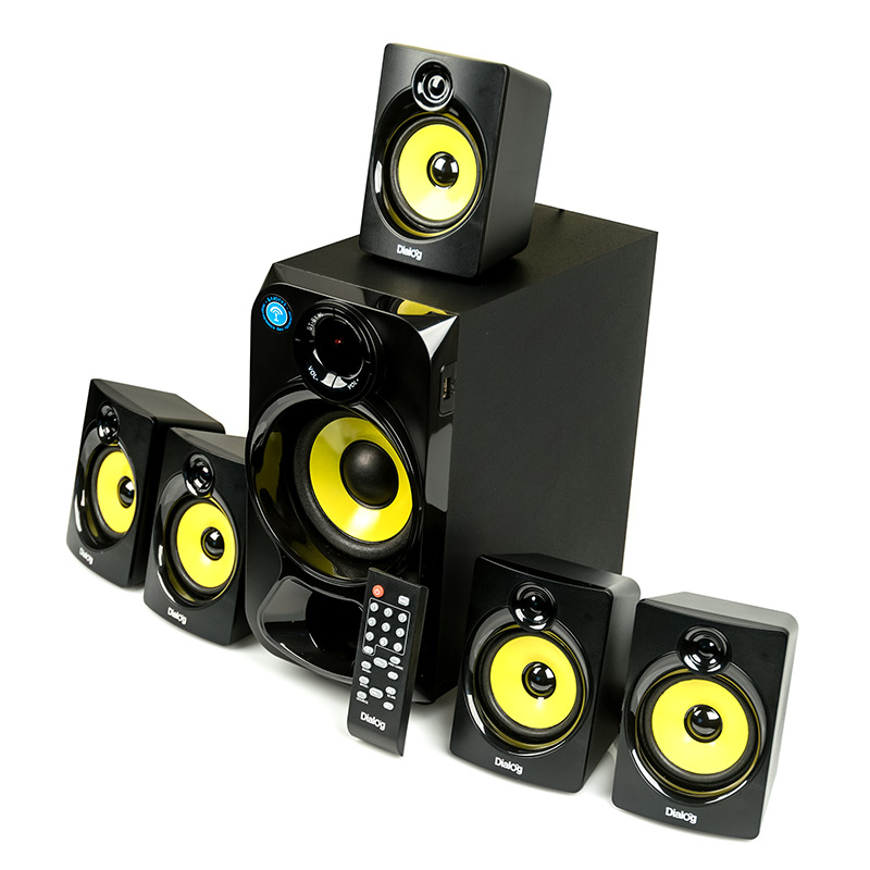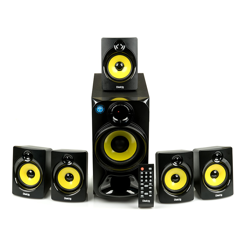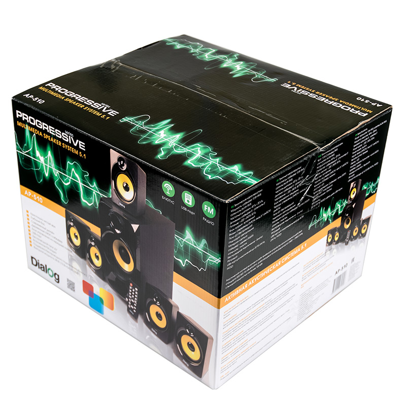 Активная акустическая система 5.1 Dialog Progressive AP-510| Описание модели | Dialog Progressive AP-510 - Активная шестикомпонентная акустическая система с поддержкой Bluetooth, USB портом, радиоприёмником FM диапазона и пультом дистанционного управления | | Технические характеристики | Модель перенесена в архив 25.07.2017 | | Модель | DIALOG AP-510 | | Мощность RMS (Вт) | 28 | | Поддержка Bluetooth | Да. Bluetooth IEEE 802.15, полоса радиочастот 2400-2483,5 МГц, выходная мощность не более 100 мВт | | USB вход | Да | | FM радио | Да | | 5.1 | Да | | Компоненты | сабвуфер, 2 фронтальных сателлита, 2 тыловых сателлита, центральный сателлит | | Усилитель | встроенный | | Тюнер | FM радиоприёмник с режимом автопоиска радиостанций | | Блок питания | встроенный | | Входы | вход 5.1 (6RCA), вход AUX (2RCA), FM антенна | | Управление | питание/воспроизведение/пауза, громкость больше, громкость меньше, выбор источника сигнала | | Пульт ДУ | полнофункциональный, инфракрасный | | Индикация | светодиод (питание/поиск) | | Длина сетевого кабеля (м) | 1,3 | | Сабвуфер | | | Динамик(и) | 5″ (на фронтальной стенке) | | Мощность (Вт) | 13 | | Фазоинвертор | на передней панели, труба, D=50 мм, L=160 мм | | Магнитное экранирование | да | | Корпус | MDF, 6 мм | | Габаритные размеры (В*Ш*Г, мм) | 260*140*265 | | Вес (кг) | 2,9 | | Фронтальные сателлиты | | | Динамик(и) | 3″ | | Мощность (Вт) | 3 | | Фазоинвертор | на задней стенке, труба, 18*6 мм, L=22 мм | | Магнитное экранирование | да | | Корпус | пластик | | Габаритные размеры (В*Ш*Г, мм) | 130*90*75 | | Вес (кг) | 0,2 | | Отсоединяемый кабель | нет | | Длина кабеля (м) | 1,8 | | Крепления на стену | да (проушины) | | Тыловые сателлиты | | | Динамик(и) | 3″ | | Мощность (Вт) | 3 | | Фазоинвертор | на задней стенке, труба, 18*6 мм, L=22 мм | | Магнитное экранирование | да | | Корпус | пластик | | Габаритные размеры (В*Ш*Г, мм) | 130*90*75 | | Вес (кг) | 0,2 | | Отсоединяемый кабель | нет | | Длина кабеля (м) | 4,6 | | Крепления на стену | да (проушины) | | Центральный сателлит | | | Динамик(и) | 3″ | | Мощность (Вт) | 3 | | Фазоинвертор | на задней стенке, труба, 18*6 мм, L=22 мм | | Магнитное экранирование | да | | Корпус | пластик | | Габаритные размеры (В*Ш*Г, мм) | 130*90*75 | | Вес (кг) | 0,2 | | Отсоединяемый кабель | нет | | Длина кабеля (м) | 1,8 | | Крепления на стену | да (проушины) | | Комплект поставки | сабвуфер, 2 фронтальных сателлита, 2 тыловых сателлита, центральный сателлит (все сателлиты с несъёмными проводами для подключения), кабель 2RCA->стереоджек 3.5мм - 3 шт., радио антенна, пульт ДУ, батарейки ААА - 2 шт., гарантийный талон, руководство пользователя, упаковка | | Код ТНВЭД | 8527919900 | | Гарантийный срок, мес. | 12 | | Cрок службы, мес. | 60 |