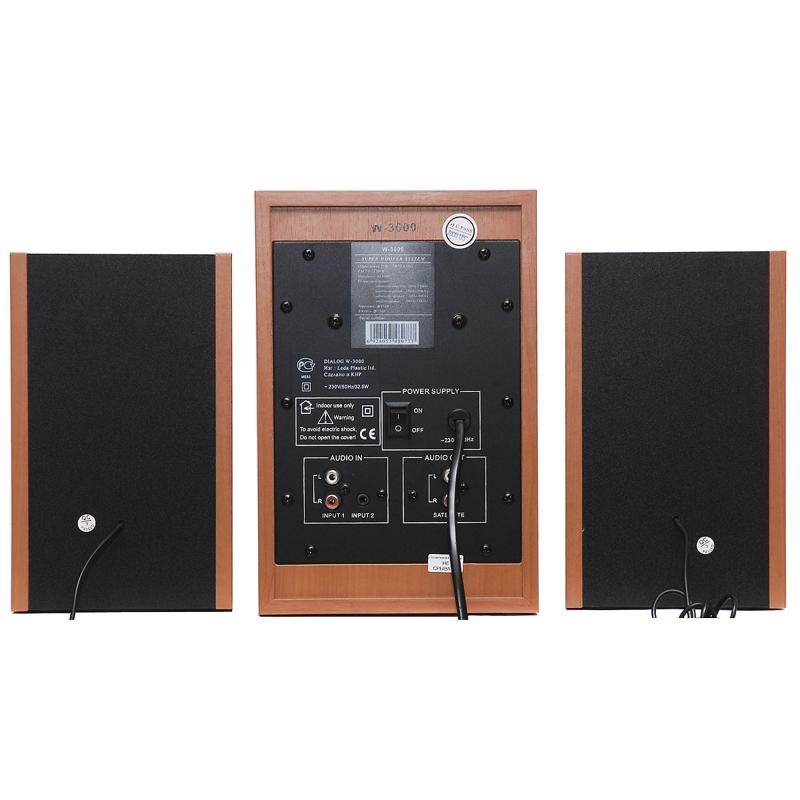 Активная трехкомпонентная акустическая система Dialog W-3000 Cherry| Описание модели | W-2000, W-3000, W-3200 - активные акустические системы 2.1 с корпусами из MDF. Системы 2.1 состоят из пары колонок и сабвуфера - громкоговорителя с большим объемом корпуса предназначенного для воспроизведения низкочастотной части сигнала. Сабвуфер освобождает сателлиты от необходимости воспроизведения низких частот, что позволяет улучшить характеристики колонок по воспроизведению остального диапазона, сохраняя небольшие габаритные размеры корпусов.