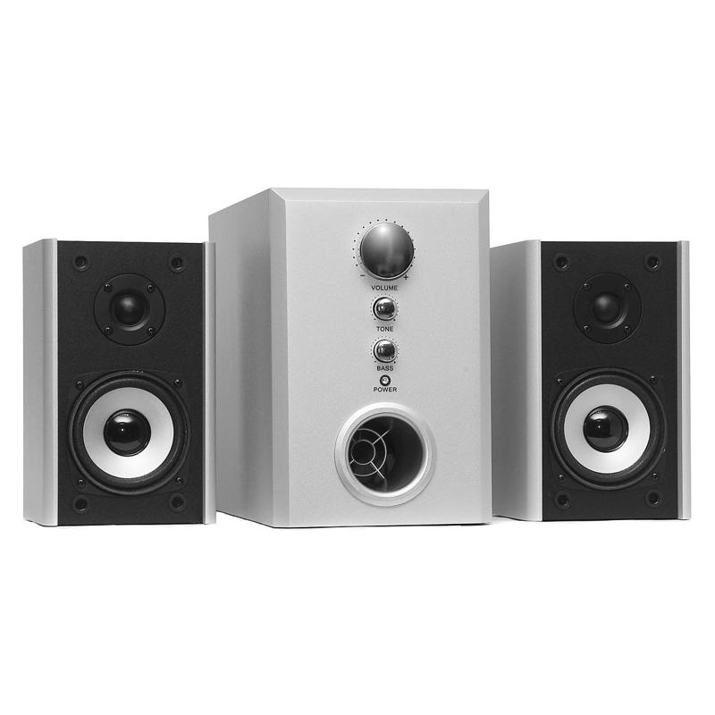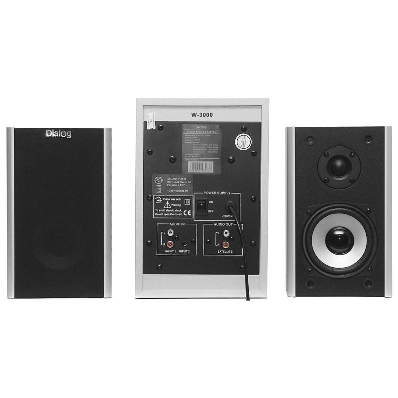 Активная трехкомпонентная акустическая система Dialog W-3000 Silver| Описание модели | W-2000, W-3000, W-3200 - активные акустические системы 2.1 с корпусами из MDF. Системы 2.1 состоят из пары колонок и сабвуфера - громкоговорителя с большим объемом корпуса предназначенного для воспроизведения низкочастотной части сигнала. Сабвуфер освобождает сателлиты от необходимости воспроизведения низких частот, что позволяет улучшить характеристики колонок по воспроизведению остального диапазона, сохраняя небольшие габаритные размеры корпусов.