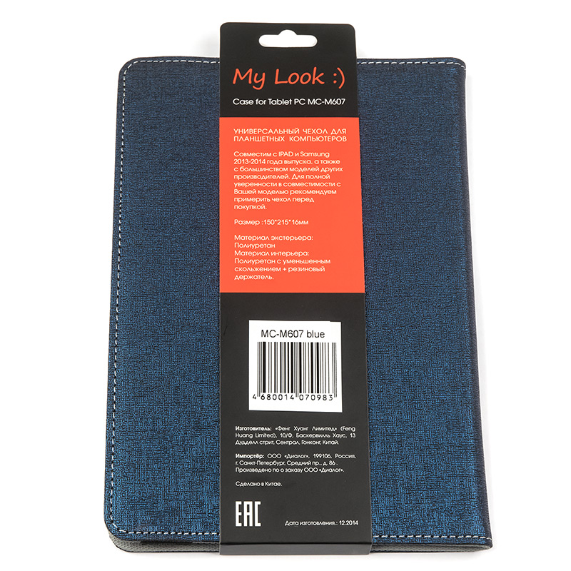 | Артикул | MC-M607 Blue | | Применимость | 7″ - 7.9″ | | Вес, гр. | 165 | | Размеры в открытом виде, мм | 310*215 | | Размеры в закрытом виде, мм | 155*215*16 | | Особенности | Силиконовый фиксатор планшета, текстильно-резиновая лента для фиксации чехла в закрытом положении | | Код ТНВЭД | 4202921900 |