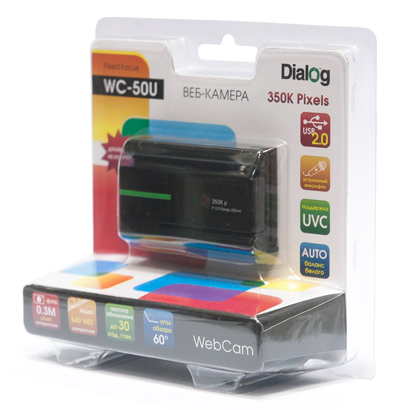 совершать видеозвонки, предоставляя возможность неограниченного общения. | | Технические характеристики | Модель перенесена в архив 13.01.2016 | | Модель: | WC-50U Black-Green | | Цвет: | Черный + Зеленый | | Интерфейс: | USB 2.0 (обратно совместима с USB 1.1 с ограничением производительности) | | Физический размер сенсора: | 1/6" | | Тип сенсора: | CMOS | | Число эффективных пикселей: | 350000 | | Аппаратное разрешение видео: | 640x480px (VGA) | | Программное разрешение видео: | До 2560x1920 (5 Мп, интерполяция) | | Аппаратное разрешение фото: | 640x480px (VGA) | | Программное разрешение фото: | До 5120x3840 (20 Мп, интерполяция) | | Количество цветов: | 16,7 Миллионов цветов (24-bit) | | Поддержка стандарта UVC: | Да | | Фокусировка: | Фиксированный фокус 0.03м~∞ | | Экспозиция: | Авто | | Баланс белого: | Авто | | Диафрагменное число: | 2.8 | | Встроенный микрофон: | Да | | Тип микрофона: | Всенаправленный электретный | | Чувствительность микрофона: | -38±4 дБ | | Частотный диапазон микрофона: | 20Гц~16кГц | | Светодиодные индикаторы: | Да, индикатор питания | | Поддерживаемые операционные системы: | Microsoft Windows XP/Vista/7, Apple MacOS X (не ниже 10.4.9), GNU/Linux (ядро не ниже 2.6.26), Сони плэйстейшн 3 (ПО версии не ниже 3.50) | | Габаритные размеры: | 63x30x50 | | Кабель: | 1.5м | | Комплектация: | Камера, miniUSB-niniUSB кабель, CD с драйверами и инструкциями, инструкция пользователя, гарантийный талон, упаковка (блистер) | | Гарантийный срок, мес. | 6 | | Cрок службы, мес. | 24 |