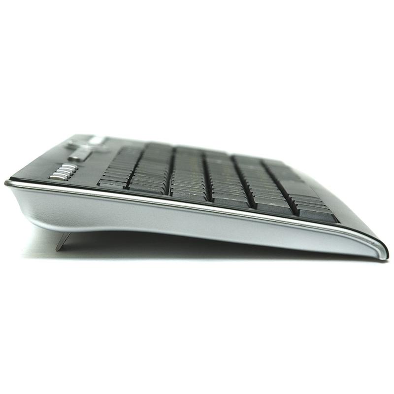 | Модель | DIALOG KMF-R11BU | | Интерфейс | USB | | Беспроводная связь | по радиоканалу 2.4 гГц | | Клавиатура | | | Корпус клавиатуры | пластик, черный | | Клавиши Windows | да | | Клавиши управления питанием | да | | Мультимедиа клавиши | да | | Интернет клавиши | да | | Клавиши приложений | да | | Тип элементов питания клавиатуры | AAA | | Количество элементов питания клавиатуры | 2 | | Изменяемый угол | да | | Поддерживаемые ОС | Любая ОС с поддержкой USB HID (MS Windows и др.) | | Размеры клавиатуры | 30*395*170 | | Мышь | | | Тип мыши | оптическая | | Разрешение мыши | 800 | | Динамически изменяемое разрешение мыши | Нет | | Материал корпуса мыши | пластик | | Количество кнопок мыши | 5 | | Прокрутка | вертикальная | | Вид элементов питания мыши | съемные аккумуляторы | | Тип элементов питания | AAA | | Количество элементов питания | 2 | | Блок питания / ЗУ | кабель USB | | Размеры мыши (В*Ш*Г, мм), max | 30*55*105 (приемник - 26*60*75) |