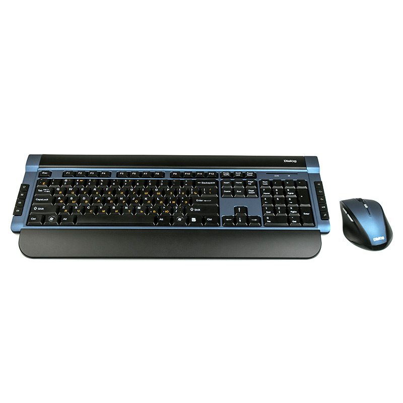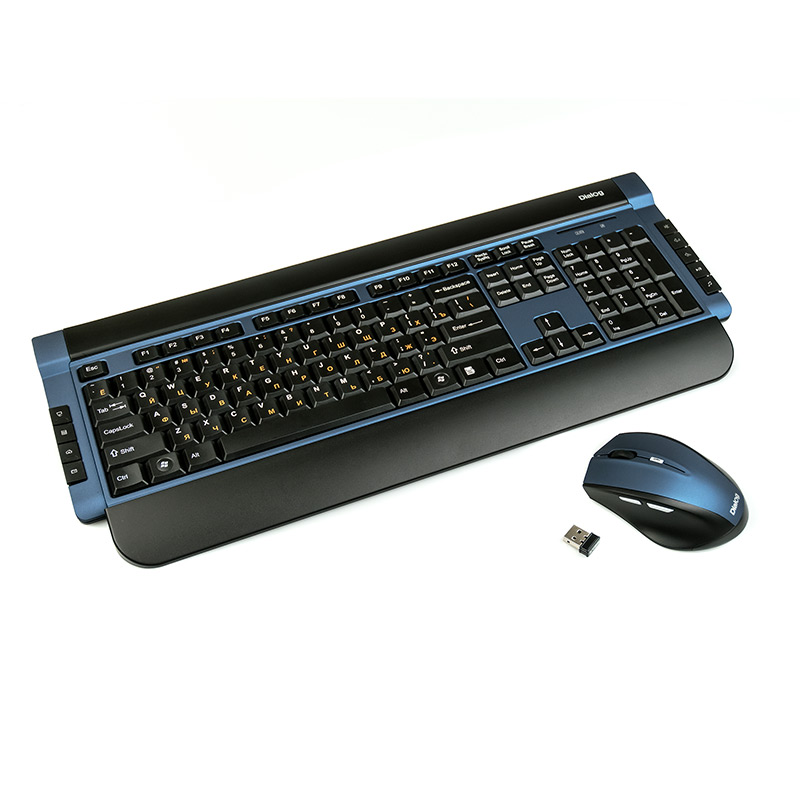 Беспроводной набор Katana: мультимедиа клавиатура + оптическая мышь Dialog KMROK-0517U Blue| Технические характеристики | Модель перенесена в архив 07.09.2017 | | Модель | DIALOG KMROK-0517U Blue | | Интерфейс | USB | | Беспроводная связь | по радиоканалу 2.4 гГц | | Клавиатура | | | Корпус клавиатуры | пластик синий хамелеон, черный матовый верх, черная матовая подставка для рук, черные клавиши, оранжевая кириллица, белая латиница | | Количество клавиш | 113 (104 основные, 9 мультимедийных) | | Клавиши Windows | да | | Мультимедиа клавиши | да | | Тип элементов питания клавиатуры | AAA | | Количество элементов питания клавиатуры | 2 | | Подставка для запястий | да, съемная | | Изменяемый угол | да | | Поддерживаемые ОС | Любая ОС с поддержкой USB HID (MS Windows и др.) | | Размеры клавиатуры | с подставкой: 475*200*18, без подставки:475*170*18 | | Вес клавиатуры | с подставкой: 0,821 | | Мышь | | | Тип мыши | Оптическая (видимый диапазон) | | Разрешение мыши | 800/1200/1600 | | Динамически изменяемое разрешение мыши | Да, изменяется кнопкой CPI | | Материал корпуса мыши | пластик | | Количество кнопок мыши | 5 | | Прокрутка | вертикальная | | Вид элементов питания мыши | батарейки | | Тип элементов питания | AA | | Количество элементов питания | 1 | | Размеры мыши (В*Ш*Г, мм), max | 102*72*35 | | Вес мыши нетто, гр. (без кабеля/батареек/грузиков и т.п.) | 66 |