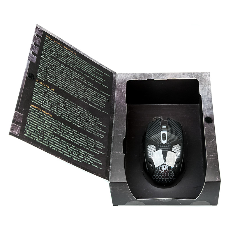 | Модель | MGK-25U | | Интерфейс | USB | | Тип | Оптическая (видимый диапазон) | | Разрешение, CPI | 800/1200/1600/2400 | | Динамически изменяемое разрешение | Да | | Кнопка изменения разрешения | DPI | | Изменение разрешения | циклическое | | Материал корпуса | верх: матовый черный софт-тач с полупрозрачной ячеистой фактурой. Боковины: черный пластик с противоскользящим тиснением. Металлический жесткий каркас. | | Количество кнопок | 6 | | Прокрутка | вертикальная | | Особенности модели | Ферритовое кольцо перед USB коннектором, кабель со скруткой на "липучке". Большая мышь для пользователей с крупной ладонью. Корпус мыши симметричен по продольной оси, но кнопки "вперед/назад" расположены на левой стороне. | | Длина кабеля, м | 1,5 | | Текстильная оплётка кабеля | да | | Размеры (В*Ш*Г, мм), max | 125*67*41 | | Вес нетто, г. (без кабеля/батареек/грузиков и т.п.) | 118 | | Комплект поставки | мышь - 1 шт, гарантийный талон - 1 шт, упаковка - 1 шт | | Код ТНВЭД | 8471607000 | | Гарантийный срок, мес. | 6 | | Cрок службы, мес. | 24 |