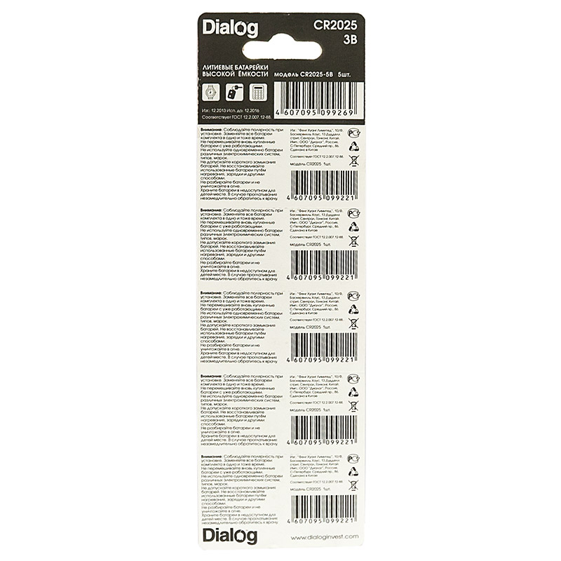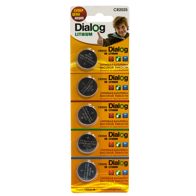 Литиевые батарейки, 5 шт. в блистере Dialog CR2025-5B