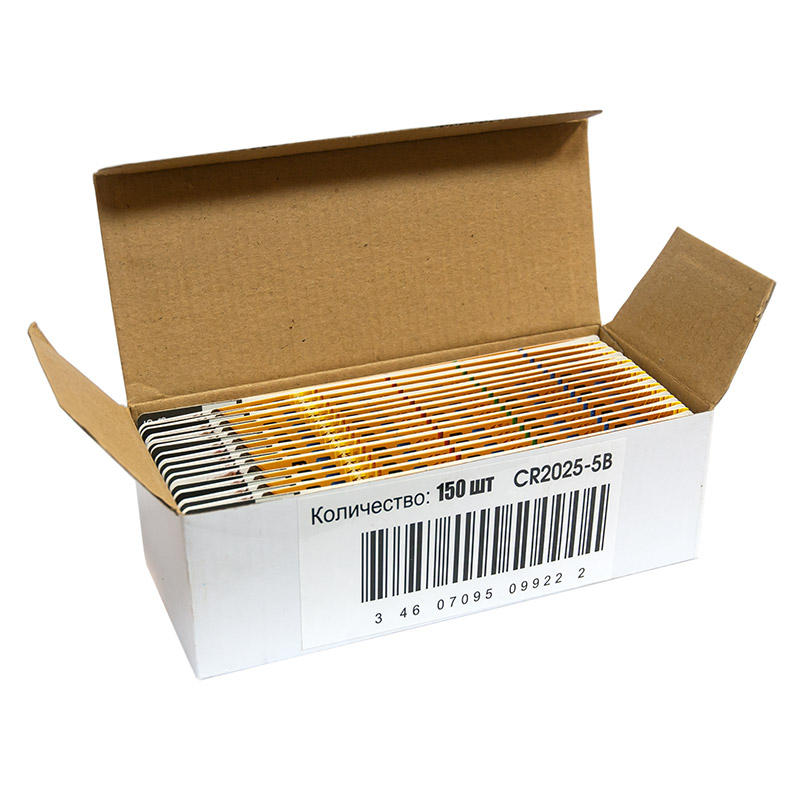 | Артикул | CR2025-5B | | Тип | Литиевая батарейка | | Перезаряжамые | Нет | | Название по стандарту IEC | CR2025 | | Номинальное напряжение, В | 3 | | Использование | Брелоки автомобильных сигнализаций, пультов дистанционного управления шлагбаумами/воротами и т.п., прочие плоские ПДУ, калькуляторы, системные платы ноутбуков/нетбуков/ПК, наручные часы, фотооборудование | | Количество в розничной упаковке (шт) | 5 | | Код ТНВЭД | 8506503000 |