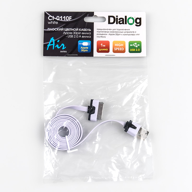 | Модель | CI-0110F white | | Тип кабеля | Кабель Apple 30pin | | Версия | USB 2.0 | | Коннектор 1 | USB тип A, вилка | | Коннектор 2 | Apple 30-pin | | Длина, м | 1.0 | | Вес, г. | 21 | | Применимость | Кабель предназначен для соединения ранних устройств Apple с 30-контактным разъемом с компьютером или зарядным устройством. Кабель поддерживает как зарядку, так и передачу данных. Допускается использование устройств Apple с iOS 8.2 или более ранними. Поддержка более поздних версий iOS не гарантируется, но не исключена. | | Код ТНВЭД | 8544429007 |