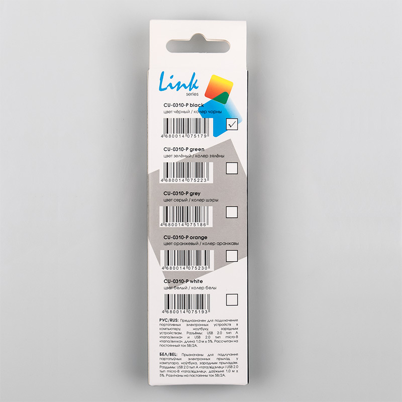 | Модель | CU-0310-P Black | | Тип кабеля | Кабель USB A - Micro USB B (m-m) | | Версия | USB 2.0 | | Коннектор 1 | USB тип А, вилка | | Коннектор 2 | Micro USB тип B, вилка | | Длина, м | 1,0 | | Вес, г. | 22 | | Применимость | Кабель предназначен для подключения к компьютеру или ноутбуку устройств с Micro USB 2.0 коннектором, например mp3 плееров, планшетных компьютеров, смартфонов, видеорегистраторов, навигаторов, электронных книг и т.д. | | Код ТНВЭД | 8544429007 |