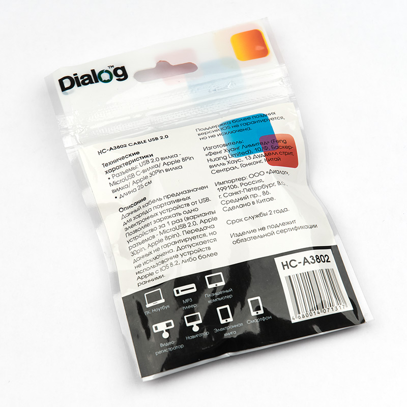 Универсальный зарядный кабель 3-в-1 Dialog HC-A3802