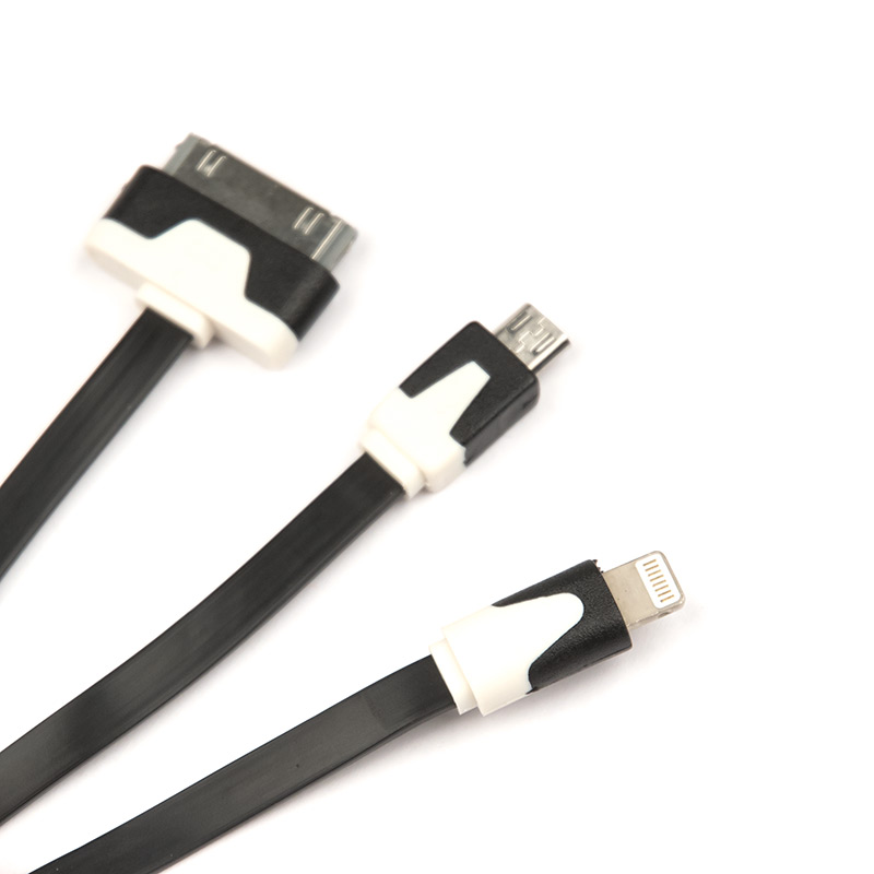 Кабель предназначен для заряда портативных устройств с разъёмом питания microUSB, Apple 30-pin и Apple 8-pin (Lightning) от USB |