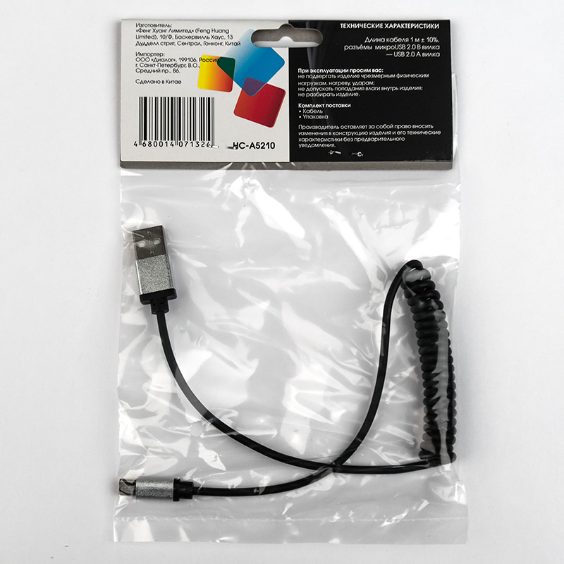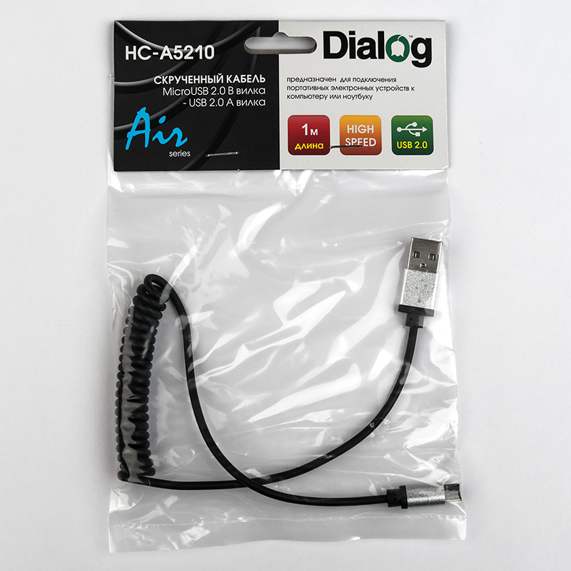 Кабель Micro USB скрученный Dialog HC-A5210| Описание модели | Кабель предназначен для подключения к компьютеру или ноутбуку устройств с Micro USB 2.0 коннектором, например mp3 плееров, планшетных компьютеров, смартфонов, видеорегистраторов, навигаторов, электронных книг и т.д. Скрученный формат кабеля очень удобен для зарядки мобильных устройств в автомобиле или для подключения мобильных устройств к ноутбуку - кабель занимает минимум места в свёрнутом виде (41 см) и при необходимости может растягиваться до 100 см. | | Технические характеристики | | Модель | HC-A5210 | | Тип кабеля | Кабель USB-MicroUSB | | Версия | USB 2.0 | | Коннектор 1 | USB тип A, вилка | | Коннектор 2 | Micro USB тип B, вилка | | Длина, м | 41 см. в скрученном виде, до 1м в растянутом виде | | Вес, г. | 15 | | Применимость | Кабель предназначен для подключения к компьютеру или ноутбуку портативных электронных устройств с Micro USB 2.0 коннектором, например mp3 плееров, планшетных компьютеров, смартфонов, видеорегистраторов, навигаторов, электронных книг и т.д. | | Код ТНВЭД | 8544429007 |