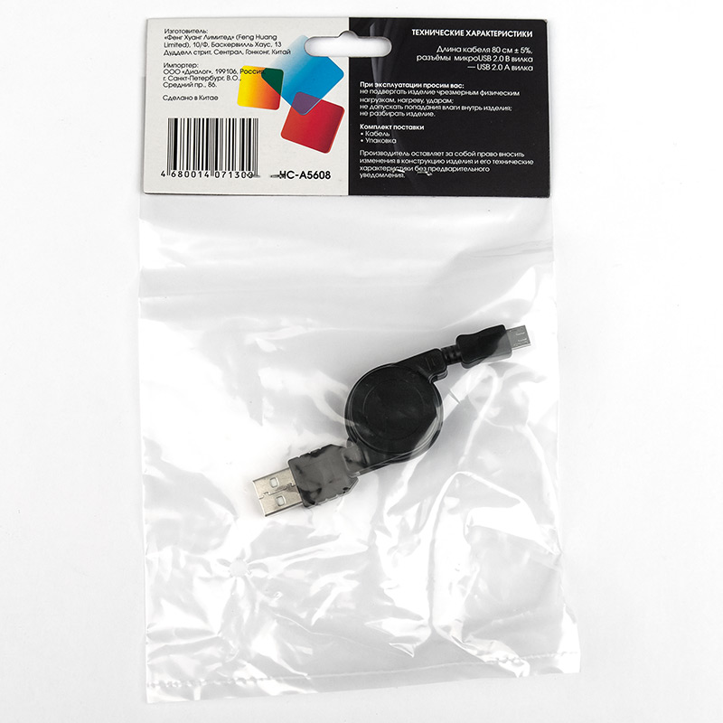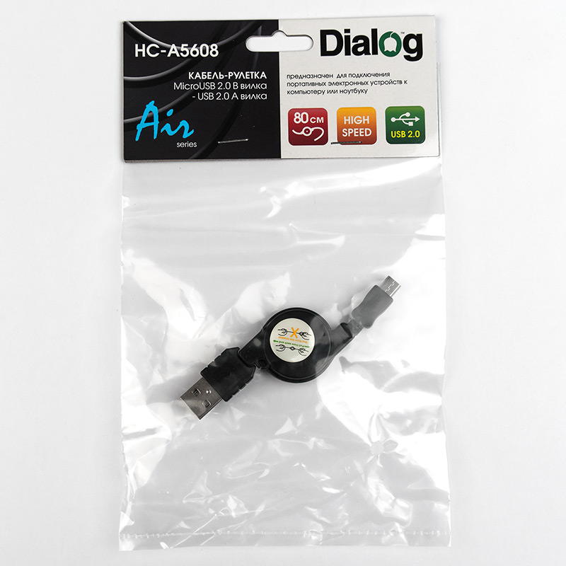 Кабель Micro USB рулетка Dialog HC-A5608| Описание модели | Кабель предназначен для подключения к компьютеру или ноутбуку устройств с Micro USB 2.0 коннектором, например mp3 плееров, планшетных компьютеров, смартфонов, видеорегистраторов, навигаторов, электронных книг и т.д. Чтобы растянуть рулетку на нужную длину, потяните кабель за оба конца. Для сворачивания рулетки потяните за оба конца кабеля, также как при растягивании, и отпустите - кабель свернётся в рулетку сам. Не тяните только за одну сторону кабеля, только за обе стороны одновременно. | | Технические характеристики | | Модель | HC-A5608 | | Тип кабеля | Кабель USB-MicroUSB рулетка | | Версия | USB 2.0 | | Коннектор 1 | USB тип A, вилка | | Коннектор 2 | Micro USB тип B, вилка | | Длина, м | в сложенном виде 10 см, в растянутом виде до 80 см | | Вес, г. | 15 | | Применимость | Кабель предназначен для подключения к компьютеру или ноутбуку портативных электронных устройств с Micro USB 2.0 коннектором, например mp3 плееров, планшетных компьютеров, смартфонов, видеорегистраторов, навигаторов, электронных книг и т.д. Удобная компактная форма делает его удобным для переноски, а формат рулетки позволяет выдвинуть кабель на нужную длину, до 80 см. | | Код ТНВЭД | 8544429007 |