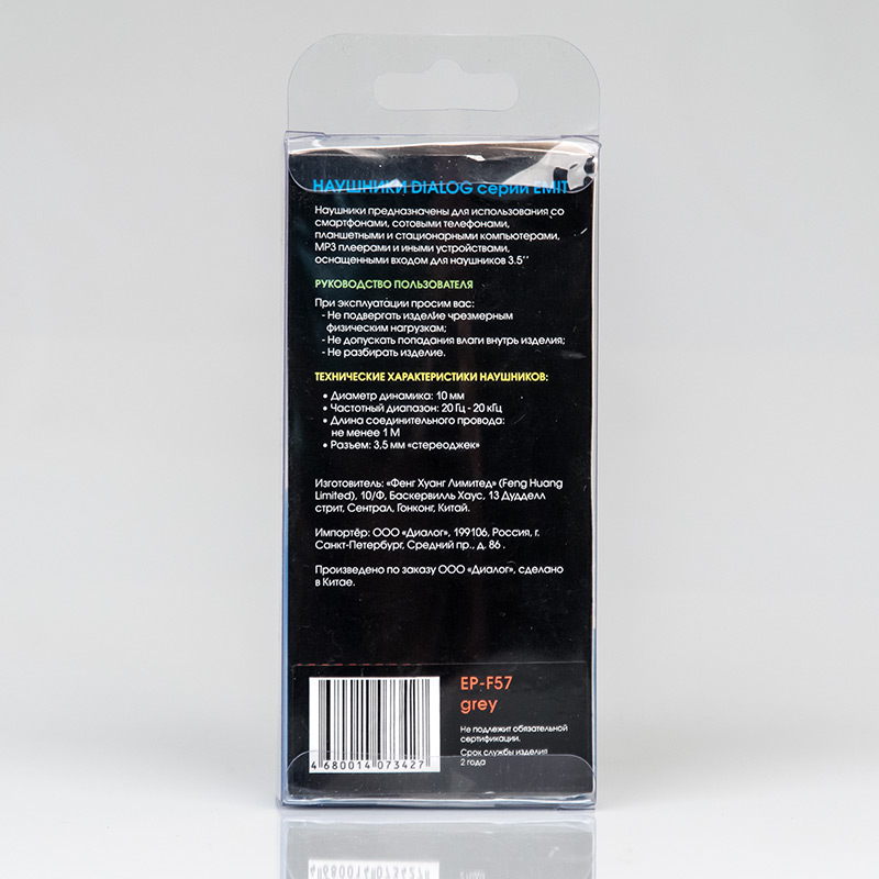 | Для наушников Dialog EP-F57 Grey нет руководства пользователя | | Все фотографии наушников Dialog EP-F57 Grey в максимальном размере одним .zip архивом, формат.jpg (23Mб) | | Для наушников Dialog EP-F57 Grey нет фотографий с прозрачной подложкой | | Сервисные центры | | Гарантия Dialog | Сертификаты и декларации соответствияДекларация о соответствии ЕвразЭС ЕАЭС N RU Д-CN.ПХ01.В.07284/20 (ТР ТС 020/2011 "Электромагнитная совместимость технических средств"), срок действия с 06.03.2020 по 05.03.2025 Декларация о соответствии ЕвразЭС ЕАЭС N RU Д-CN.НВ11.В.05843/20 (ТР ЕАЭС 037/2016 "Об ограничениях применения опасных веществ в изделиях электротехники и радиоэлектроники"), срок действия с 26.02.2020 по 25.02.2025