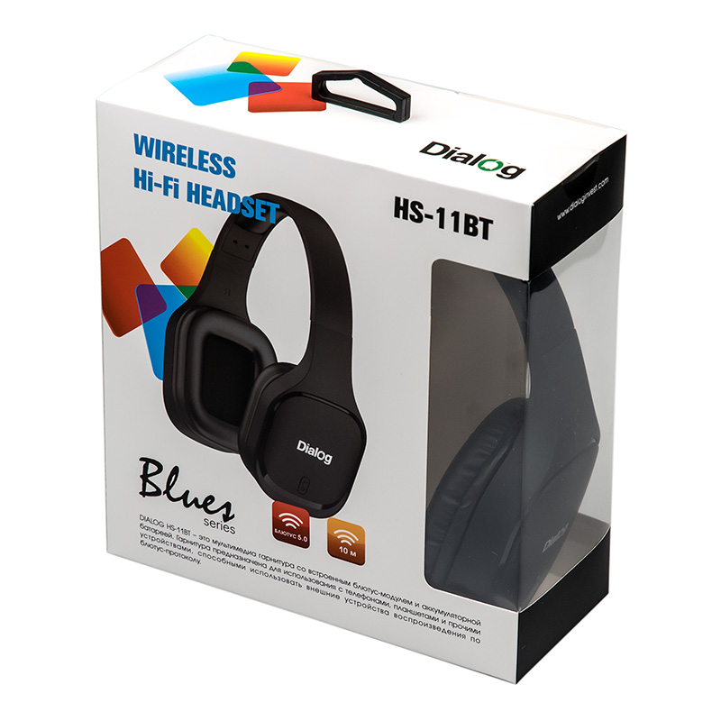 Полноразмерная Bluetooth гарнитура Dialog Blues HS-11BT Black| Технические характеристики | | Модель: | HS-11BT Black | | Интерфейс/спецификация | Bluetooth | | Радиус уверенного приёма, м | Излучаемая мощность и радиус действия соответствует классу 2 | | Версия Bluetooth | 5.1 EDR | | Профили Bluetooth | Generic Access Profile (GAP), Advanced Audio Distribution Profile (A2DP), Audio / Video Remote Control Profile (AVRCP), Hands-Free Profile (HFP), Serial Port Profile (SPP), Attribute Profile (ATT), Generic Attribute Profile (GATT) | | Режимы работы | Беспроводные наушники; беспроводная гарнитура | | Тип аккумулятора | встроеннный Li-Ion | | Ёмкость аккумулятора, мАч | 200 мА*ч, 3.7В, 0.74В*ч | | Длительность автономной работы | При разговоре и/или при проигрывании музыки до 4 часов (зависит от способа использования, интенсивности, громкости) | | Длительность автономной работы в режиме ожидания | до 160 часов | | Тип зарядного кабеля | USB | | Длительность полной зарядки аккумулятора, ч | 1,5 - 2,5 часа | | Индикация | Светодиодный индикатор режима работы и зарядки на наушниках (подробная информация в руководстве пользователя) | | Управление | Воспроизведение/пауза, следующий трек/увеличить громкость (долгое нажатие), предыдущий трек/уменьшить громкость (долгое нажатие), питание вкл-выкл/ответ на звонок | | Режим | стерео | | Размер динамика (мм) | 40 | | Сопротивление (Ом) | 32 ± 15% | | Чувствительность (дБ/мВт) | 116 ± 3db | | Акустическое оформление | закрытое | | Чашки | пластик софт-тач | | Амбушюры | пенополиуретан, искусственная кожа | | Оголовье | с регулируемой длиной | | Кабель | Кабель USB-MicroUSB для подзарядки гарнитуры 40 см ± 2 см | | Тип разъема | MicroUSB | | Вес наушников без кабеля (г.) | 148 г | | Микрофон | | | Тип микрофона | конденсаторный | | Режим | моно | | Конструкция микрофона | внутри чашки гарнитуры |