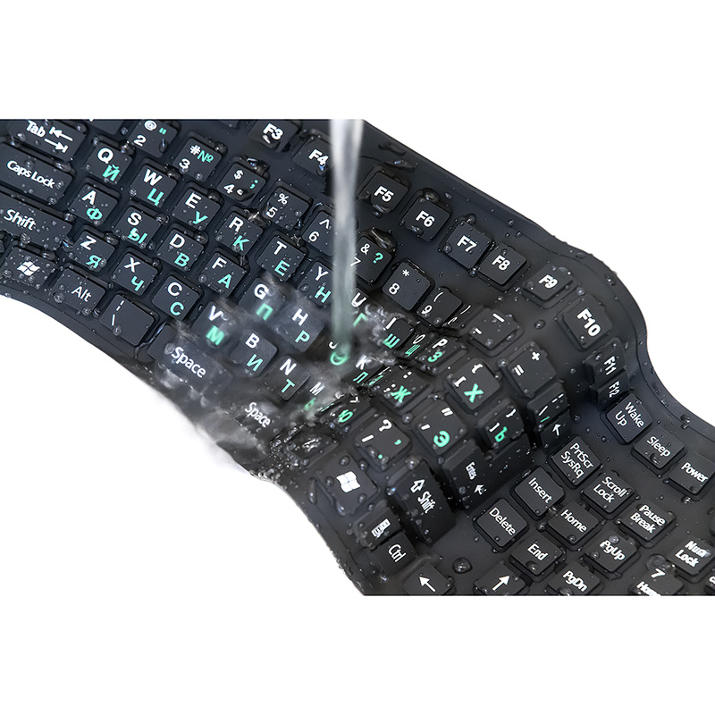 | Модель | KFX-05U | | Интерфейс | USB | | Корпус | Черный силикон. Латиница - белый цвет, кириллица - зелёный | | Количество клавиш | Физических клавиш: 111. Фактически: 109 (клавиша Space выполнена двумя физическими клавишами, "пустая" клавиша справа от пробела не генерирует сканкод) | | Клавиши Windows | да | | Клавиши управления питанием | да. Клавиши Power, Sleep и Wake Up | | Мультимедиа-клавиши | клавиша запуска калькулятора | | Особенности | уровень пыле-влаго защищенности IP67. Клавиатуру можно мыть. Бесшумный клик. Можно свернуть в рулон 14*8*2 см - очень компактна при переноске. Классическая раскладка клавиш и клавиатурных блоков. | | Длина кабеля, м | 1,5 | | Габаритные размеры (В*Ш*Г, мм) | 435*140*7 | | Вес (кг) | 0,185 с кабелем | | Комплект поставки | клавиатура - 1 шт, гарантийный талон - 1 шт, упаковка - 1 шт | | Код ТНВЭД | 8471606000 | | Гарантийный срок, мес. | 6 | | Cрок службы, мес. | 24 |