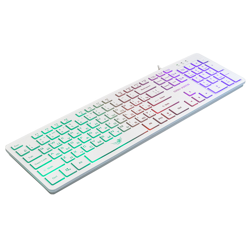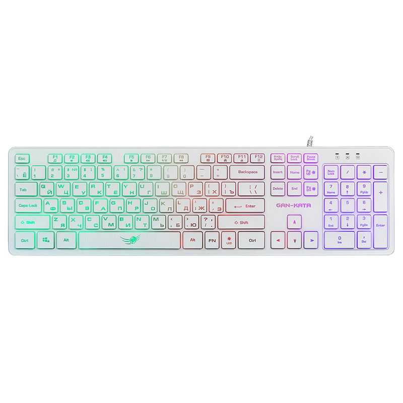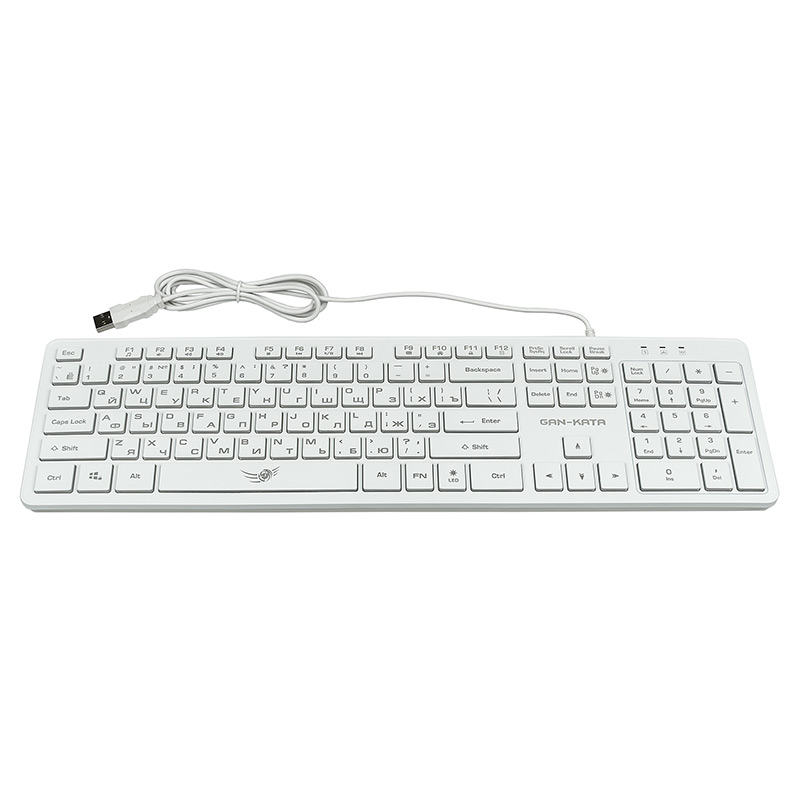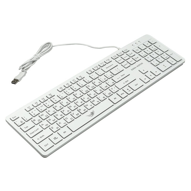 | Модель | KGK-17U White | | Интерфейс | USB | | Корпус | белый пластик. Серая латиница, Серая кириллица. Клавиши с белой рабочей поверхностью и просвечивающими боковинами. Символы просвечиваются при включенной подсветке | | Количество клавиш | 104 | | Клавиши Windows | да | | Мультимедиа-клавиши | комбинированы с F-клавишами | | Дополнительные функции | Fn+F1: Запуск медиапроигрывателя
