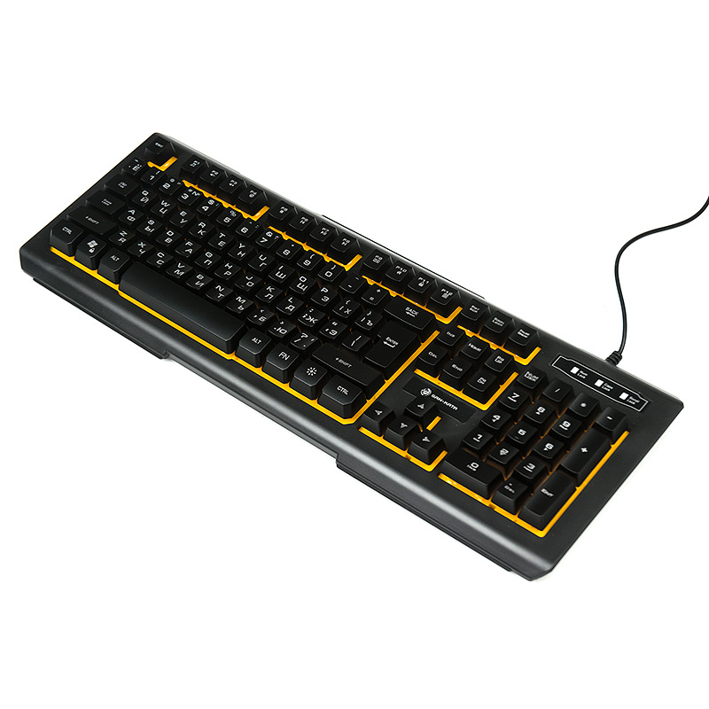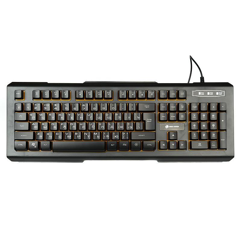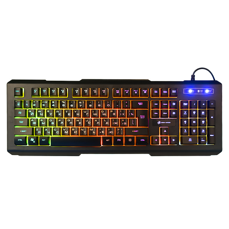 | Модель | KGK-21U | | Интерфейс | USB | | Корпус | черный матовый пластик, желтая подложка под клавишами | | Количество клавиш | 104 | | Клавиши Windows | да | | Мультимедиа-клавиши | 12 функций, комбинированы с F-клавишами через клавишу FN | | Подсветка клавиш | да. Сквозная радужная (многоцветная) подсветка, регулируемая яркость (три уровня яркости). Функция возрастающе-затухающей пульсирующей подсветки. | | Регулируемый угол наклона | да | | Длина кабеля, м | 1,5 | | Габаритные размеры (В*Ш*Г, мм) | 460*165*30 | | Вес (кг) | 0,800 | | Комплект поставки | клавиатура, гарантийный талон, упаковка | | Код ТНВЭД | 8471606000 | | Гарантийный срок, мес. | 6 | | Cрок службы, мес. | 24 |