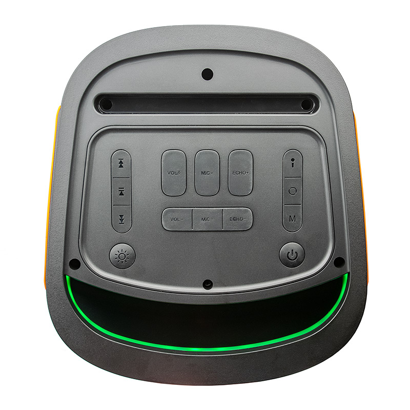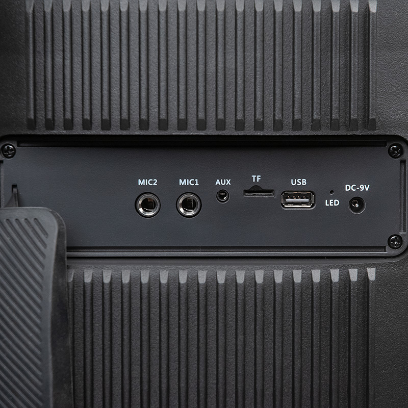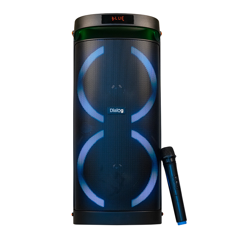Переносная напольная акустическая система c караоке, Bluetooth, microSD, USB и FM радио Dialog Oscar AO-300| Технические характеристики | Модель перенесена в архив 07.10.2023 | | Модель | AO-300 | | Тип | Напольная переносная | | Формат | Моно | | Мощность системы RMS (Вт) | 80 | | Беспроводной интерфейс | Да. Поддержка Bluetooth v.5.0, A2DP 1.0, AVRCP 1.5, AVDTP 1.0, AVCTP 1.4, HFP 1.5, GAVDP 1.0 | | Поддержка режима TWS | Да. Можно сформировать стереопару из двух одинаковых колонок | | Аккумулятор | встроенный Li-Ion аккумулятор 3600 мА*ч, 7,4 В, напряжение и сила зарядного тока 9В 1500 мА | | Время работы от батареи | Зависит от громкости, режима использования, температуры окружающей среды. При полном заряде аккумулятора на 50% громкости внутри помещения приблизительно 3 часа, на максимальной громкости приблизительно 1 час 30 минут | | Powerbank режим | Нет | | Поддержка USB флэш накопителей | Да | | Слот для карт памяти SD (Secure Digital) | Да, MicroSD (TransFlash) | | FM-радиоприемник | Да, встроенная антенна | | Поддерживаемые тип и размер файловой системы | до 32 Гб, FAT16 или FAT32 | | Поддерживаемые форматы файлов | MPEG-1 Audio Layer 3 (MP3) с битрейтом 64 — 320 Кбит/с, FLAC, WAV | | Компоненты | напольная переносная акустическая система | | Усилитель | встроенный | | Соотношение сигнал/шум, Дб | 70 | | Гармонические искажения | <20% | | Блок питания | Встроенный аккумулятор либо питание от внешнего ~220В 50/60Гц адаптера питания: постоянный ток 9В / 1500 мА, штырьковой коннектор 5,5*2,1*10 прямой (в комплекте) | | Входы | AUX Line-in (миниджек 3.5 мм) | | Микрофонный вход | да, два микрофонных входа Jack TRS 6,35мм | | Выход на наушники | нет | | Караоке | Да | | Беспроводной микрофон | Да, акустическая система работает с беспроводным микрофоном (в комплекте), питание беспроводного микрофона от двух батареек типа АА (LR6, 1.5В, "пальчиковые") | | Проводной микрофон | Да. Два микрофонных входа jack (6,35 мм, 1/4″) | | Управление | Кнопки с резиновым покрытием на верхней панели: питание, выбор режима (источника звука), повтор воспроизведения, приоритет микрофона, следующая запись/радиостанция, предыдущая запись/радиостанция, воспроизведение/пауза, увеличить громкость, уменьшить громкость, увеличить громкость микрофона, уменьшить громкость микрофона, увеличить эхо, уменьшить эхо, цветомузыка (режим) | | Пульт ДУ | Нет | | Индикация | четырехсимвольный дисплей в верхней части фронтальной панели колонки (светящиеся красные символы, тёмный дисплей) | | Цветомузыка | Да, отключаемая RGB цветомузыка/динамическая подсветка на фронтальной панели вокруг динамиков и за ручкой | | Динамик(и) | 2*8″ | | Мощность (Вт) | 80 | | Сопротивление (Ом) | 4 | | Частотный диапазон (Гц-КГц) | 30-18 | | Корпус | пластик | | Гриль | Несъемый металлический гриль чёрного цвета | | Размер корпуса (В*Ш*Г, мм) | 655*288*306 | | Вес (кг) | 7,40 | | Комплект поставки | акустическая система - 1 шт, беспроводной микрофон - 1 шт, адаптер питания 9В 1,5А - 1 шт, руководство пользователя с гарантийным талоном - 1 шт, упаковка - 1 шт | | Код ТНВЭД | 8527919900 | | Гарантийный срок, мес. | 12 | | Cрок службы, мес. | 60 |