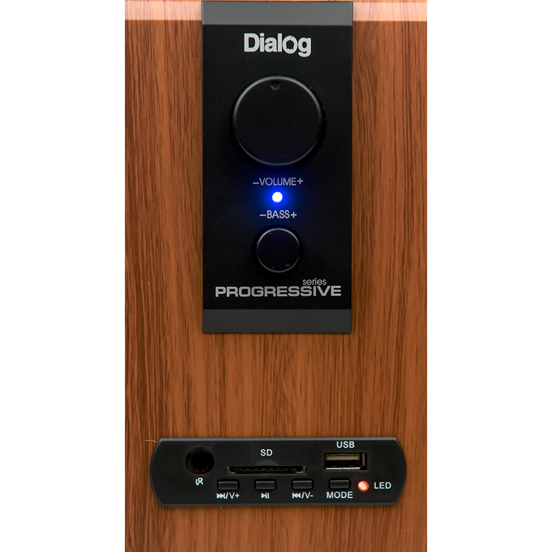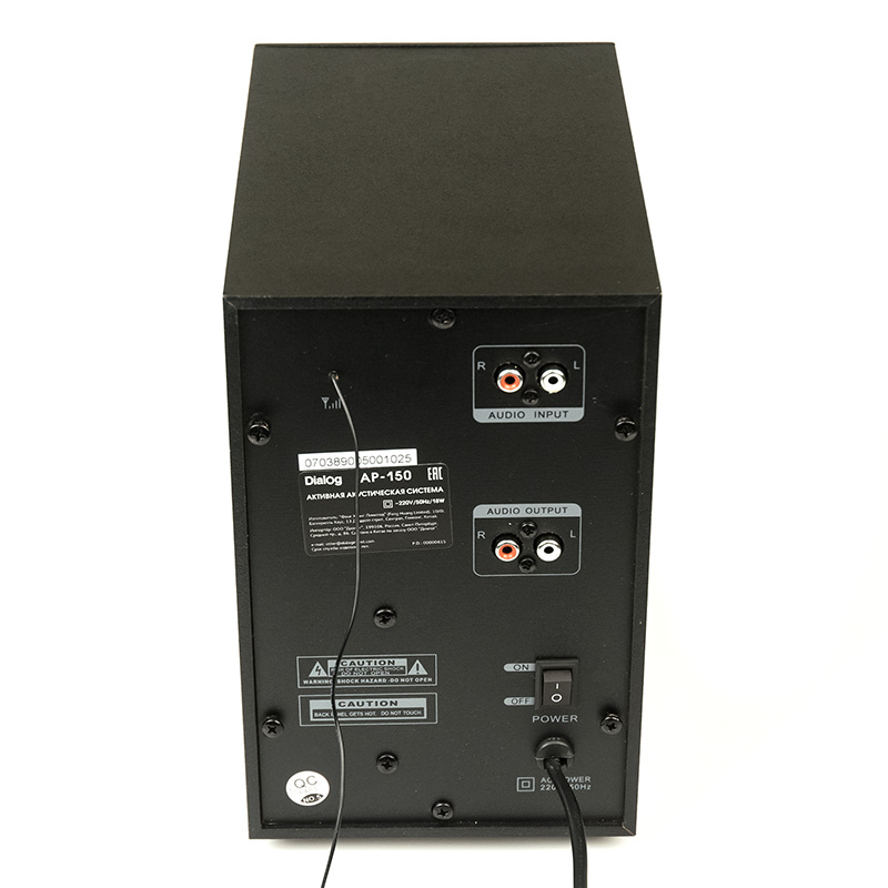 Активная акустическая система 2.1 Dialog Progressive AP-150 Brown| Технические характеристики | | Модель | AP-150 Brown | | Мощность RMS (Вт) | 20 | | USB вход | Да | | Поддержка карт SD (Secure Digital) | Да. SD, а также miniSD и microSD (через переходник, приобретаемый отдельно) | | FM радио | Да, память на 20 радиостанций | | Усилитель | встроенный | | Компоненты | сабвуфер, два сателлита | | Блок питания | встроенный | | Входы | стереовход (2RCA); USB порт для флэш-накопителей; Слот для SD карт | | Управление | сабвуфер: питание (на задней стенке), общая громкость, уровень низких частот, переключение источника сигнала, пауза/воспроизведение, вперед/назад (по трекам или радиостанциям); пульт ДУ: подробное описание в руководстве пользователя | | Пульт ДУ | инфракрасный пульт ДУ. Питание от литиевой батарейки CR2025 | | Индикация | светодиод (питание) | | Длина сетевого кабеля (м) | 1,5 | | Сабвуфер | | | Динамик(и) | 4″ | | Мощность (Вт) | 10 | | Сопротивление (Ом) | 6 | | Частотный диапазон (Гц-Гц) | от 20 Гц | | Материал диффузора | бумага | | Фазоинвертор | труба на боковой стенке, D=50 мм, L=70 мм, выходное отверстие фазоинвертера закрыто изутри защитной сеткой для защиты от попадания посторонних предметов внутрь сабвуфера | | Магнитное экранирование | да | | Корпус | MDF, 5 мм | | Габаритные размеры (В*Ш*Г, мм) | 220*140*230 (корпус без учета ножек) | | Вес (кг) | 1,55 | | Сателлиты | | | Динамик(и) | 3″ | | Мощность (Вт) | 5 | | Сопротивление (Ом) | 4 | | Частотный диапазон (Гц-КГц) | до 20 кГц | | Материал диффузора | бумага | | Магнитное экранирование | да | | Корпус | MDF, 5 мм | | Гриль | ткань, черный цвет | | Габаритные размеры (В*Ш*Г, мм) | 140*98*100 | | Вес (кг) | 0,33 | | Комплект поставки | сабвуфер, два сателлита со встроенным кабелем для подключения, кабель для подключения к источнику сигнала 2RCA-M->3.5 мм "стерео джек", беспроводной пульт ДУ, руководство пользователя, гарантийный талон, упаковка | | Код ТНВЭД | 8527919900 | | Гарантийный срок, мес. | 12 | | Cрок службы, мес. | 60 |