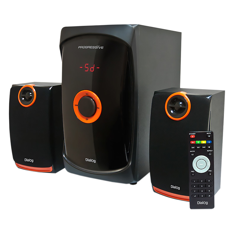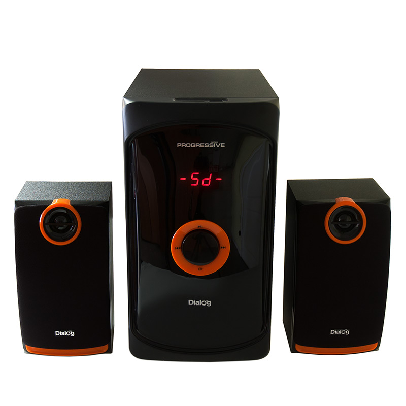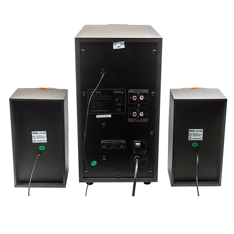 Активная акустическая система 2.1 с Bluetooth Dialog Progressive AP-200| Технические характеристики | | Модель | AP-200 | | Мощность RMS (Вт) | 60 | | Поддержка Bluetooth | Да, только для моделей, произведённых начиная с октября 2020 года. Дату производства см. на стикере на тыловой части сабвуфера в формате P.D.000000000ММГГ, где ММ - месяц (01-12), ГГ - год. | | USB вход | Да | | Поддержка карт SD (Secure Digital) | Да. SD, а также miniSD и microSD (через переходник, приобретаемый отдельно) | | FM радио | Да, память на 20 радиостанций | | Усилитель | встроенный | | Компоненты | сабвуфер, два сателлита | | Соотношение сигнал/шум | >80 | | Гармонические искажения | не более 0.3% при мощности 1 Вт и полосе 1 кГц | | Блок питания | встроенный | | Входы | стереовход (2RCA); USB порт для флэш-накопителей; Слот для SD карт | | Управление | сабвуфер: питание, переключение источника сигнала, пауза/воспроизведение, вперед/назад (по трекам или радиостанциям); пульт ДУ: подробное описание в руководстве пользователя | | Пульт ДУ | пульт ДУ | | Индикация | четырехсимвольный дисплей на сабвуфере | | Длина сетевого кабеля (м) | 1,5 | | Сабвуфер | | | Динамик(и) | 5.25″ | | Мощность (Вт) | 30 | | Сопротивление (Ом) | 4 | | Частотный диапазон (Гц-Гц) | от 40 Гц | | Материал диффузора | бумага | | Фазоинвертор | труба на нижней стенке | | Магнитное экранирование | да | | Корпус | MDF, 9 мм | | Габаритные размеры (В*Ш*Г, мм) | 325*310*170 | | Вес (кг) | 4,1 | | Сателлиты | | | Динамик(и) | 3″ | | Мощность (Вт) | 15 | | Сопротивление (Ом) | 4 | | Частотный диапазон (Гц-КГц) | до 20 кГц | | Материал диффузора | бумага | | Магнитное экранирование | да | | Корпус | MDF, 5 мм | | Габаритные размеры (В*Ш*Г, мм) | 200*118*118 | | Вес (кг) | 0,58 | | Комплект поставки | сабвуфер, два сателлита, кабель для подключения к источнику сигнала 2RCA->3.5 мм стерео джек, беспроводной пульт ДУ, руководство пользователя, гарантийный талон, упаковка | | Код ТНВЭД | 8527919900 | | Гарантийный срок, мес. | 12 | | Cрок службы, мес. | 60 |