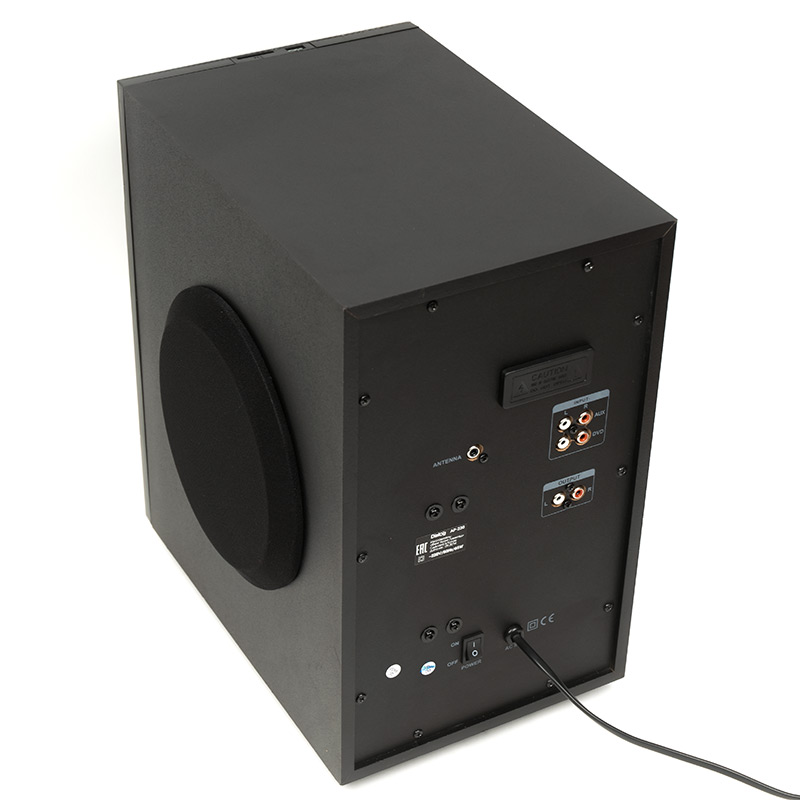 Активные колонки со встроенным кардридером, USB портом и Bluetooth модулем Dialog Progressive AP-230| Технические характеристики | | Модель | AP-230 | | Мощность RMS (Вт) | 65 | | Поддержка Bluetooth | Да, излучаемая мощность и радиус действия соответствуют классу 2 | | USB вход | Да | | Поддержка карт SD (Secure Digital) | Да. SD, а также miniSD и microSD (через переходник, приобретаемый отдельно) | | FM радио | Да, память на 99 радиостанций | | Усилитель | встроенный | | Компоненты | сабвуфер, два сателлита | | Блок питания | встроенный | | Входы | два стереовхода (2RCA): "AUX" и "DVD"; USB порт для флэш-накопителей; Слот для SD карт | | Управление | сабвуфер: питание, переключение источника сигнала, пауза/воспроизведение, вперед/назад (по трекам или радиостанциям); НЧ/ВЧ регулятор, громкость больше/меньше; пульт ДУ: подробное описание в руководстве пользователя | | Пульт ДУ | пульт ДУ | | Индикация | информационный дисплей на фронтальной панели сабвуфера | | Длина сетевого кабеля (м) | 1,5 | | Сабвуфер | | | Динамик(и) | 6.5″ | | Мощность (Вт) | 35 | | Сопротивление (Ом) | 8 | | Частотный диапазон (Гц-Гц) | от 20 Гц | | Материал диффузора | бумага | | Фазоинвертор | труба на передней панели | | Магнитное экранирование | да | | Корпус | MDF, 9 мм | | Гриль | несъемный текстильный черный | | Габаритные размеры (В*Ш*Г, мм) | 325*215*376 | | Сателлиты | | | Динамик(и) | 2*3″ + 1,5″ | | Мощность (Вт) | 15 | | Сопротивление (Ом) | 8 | | Частотный диапазон (Гц-КГц) | до 20 кГц | | Материал диффузора | бумага | | Магнитное экранирование | да | | Корпус | MDF, 4 мм | | Комплект поставки | сабвуфер, два сателлита с кабелем для подключения, кабель для подключения к источнику сигнала 2RCA-M->3.5 мм "стерео джек", пульт дистанционного управления, руководство пользователя, гарантийный талон, упаковка | | Код ТНВЭД | 8527919900 | | Гарантийный срок, мес. | 12 | | Cрок службы, мес. | 60 |