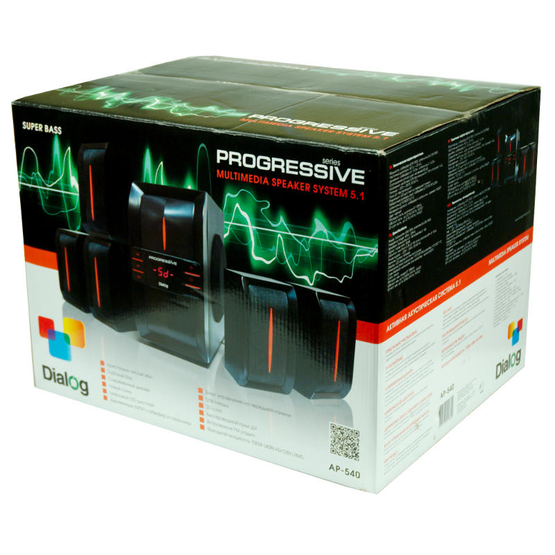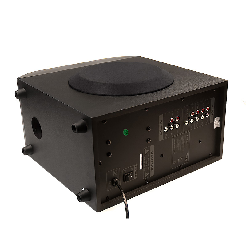 Активная акустическая система 5.1 с Bluetooth Dialog Progressive AP-540| Технические характеристики | | Модель | DIALOG AP-540 | | Мощность RMS (Вт) | 100 | | Поддержка Bluetooth | Да, только для моделей, произведённых с октября 2020 года включительно. Дату производства см. на стикере на тыловой части сабвуфера в формате P.D.000000000ММГГ, где ММ - месяц (01-12), ГГ - год. | | USB вход | Да | | Поддержка карт SD (Secure Digital) | Да. SD, а также miniSD и microSD (через переходник, приобретаемый отдельно) | | FM радио | Да, память на 20 радиостанций | | 5.1 | да | | Компоненты | сабвуфер, 2 фронтальных сателлита, 2 тыловых сателлита, центральный сателлит | | Усилитель | встроенный | | Соотношение сигнал/шум (дБ) | >80 | | Тюнер | FM радиоприёмник с режимом автопоиска радиостанций | | Память тюнера | до 20 радиостанций | | Блок питания | встроенный | | Входы | вход 5.1 (6RCA), FM антенна | | Управление | питание, громкость, переключение источника сигнала, предыдущий/следующий трек (радиостанция) | | Пульт ДУ | полнофункциональный, инфракрасный | | Индикация | четырехсимвольный информационный дисплей | | Длина сетевого кабеля (м) | 1,5 | | Сабвуфер | | | Динамик(и) | 6.5″ (на боковой стенке) | | Мощность (Вт) | 40 | | Сопротивление (Ом) | 8 | | Частотный диапазон (Гц-Гц) | от 40 | | Материал динамика(ов) | текстурированная бумага | | Фазоинвертор | труба на нижней стенке | | Магнитное экранирование | да | | Корпус | MDF, 9 мм | | Гриль | акустическая ткань, черный цвет | | Габаритные размеры (В*Ш*Г, мм) | 315*310*170 | | Вес (кг) | 5,0 | | Фронтальные сателлиты | | | Динамик(и) | 3″ | | Мощность (Вт) | 12 | | Сопротивление (Ом) | 4 | | Частотный диапазон (Гц-КГц) | 200-20 | | Материал динамика(ов) | бумага | | Магнитное экранирование | да | | Корпус | MDF, 5 мм | | Гриль | ткань, черный цвет, оранжевая декоративная вставка | | Габаритные размеры (В*Ш*Г, мм) | 110*110*200 | | Вес (кг) | 0,58 | | Отсоединяемый кабель | нет | | Длина кабеля (м) | 2,0 | | Тыловые сателлиты | | | Динамик(и) | 3″ | | Мощность (Вт) | 12 | | Сопротивление (Ом) | 4 | | Частотный диапазон (Гц-КГц) | 200-20 | | Материал динамика(ов) | бумага | | Магнитное экранирование | да | | Корпус | MDF, 5 мм | | Гриль | ткань, черный цвет, оранжевая декоративная вставка | | Габаритные размеры (В*Ш*Г, мм) | 110*110*200 | | Вес (кг) | 0,58 | | Отсоединяемый кабель | нет | | Длина кабеля (м) | 4,8 | | Центральный сателлит | | | Динамик(и) | 3″ | | Мощность (Вт) | 12 | | Сопротивление (Ом) | 4 | | Частотный диапазон (Гц-КГц) | 200-20 | | Материал динамика(ов) | бумага | | Магнитное экранирование | да | | Корпус | MDF, 5 мм | | Гриль | ткань, черный цвет, оранжевая декоративная вставка | | Габаритные размеры (В*Ш*Г, мм) | 110*110*200 | | Вес (кг) | 0,58 | | Отсоединяемый кабель | нет | | Длина кабеля (м) | 2,0 | | Комплект поставки | сабвуфер, 2 фронтальных сателлита, 2 тыловых сателлита, центральный сателлит, кабель 2RCA->2RCA -3 шт., FM антенна, пульт ДУ, упаковка, руководство пользователя, гарантийный талон | | Код ТНВЭД | 8527919900 | | Гарантийный срок, мес. | 12 | | Cрок службы, мес. | 60 |
