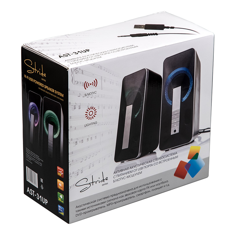 Мультимедийные колонки с Bluetooth, RGB подсветкой и питанием от USB Dialog Stride AST-31UP