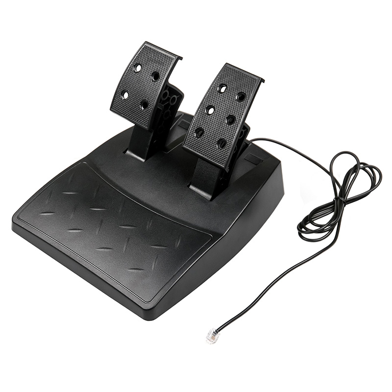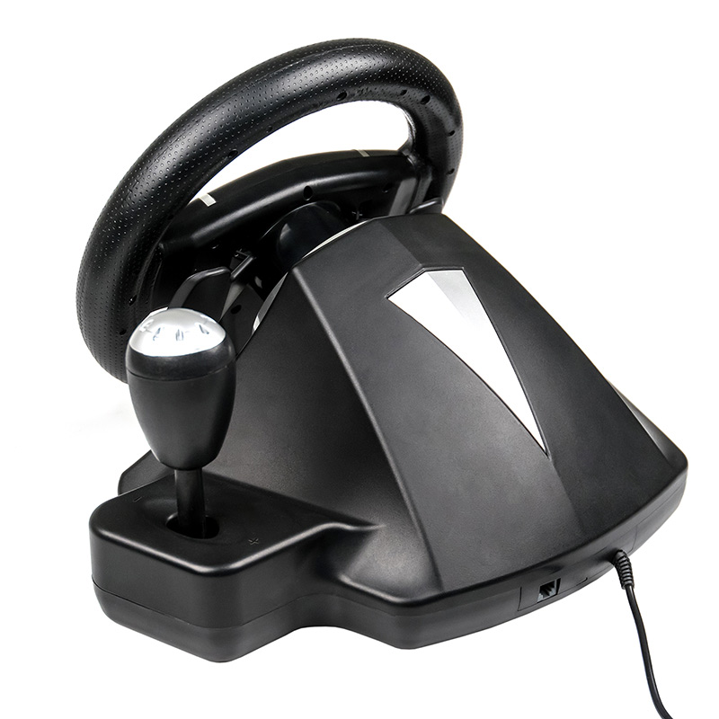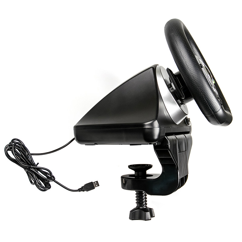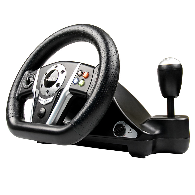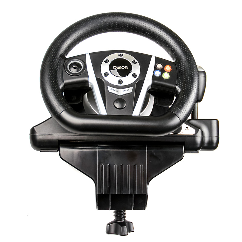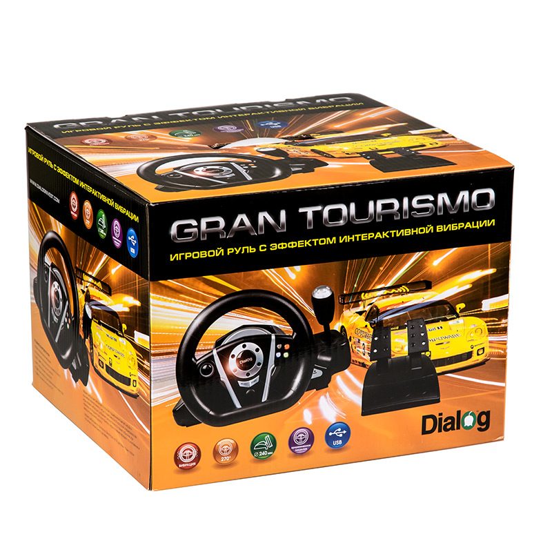 Джойстик-руль Gran Tourismo с эффектом вибрации Dialog GW-135VR| Технические характеристики | | Модель | DIALOG GW-135VR | | Интерфейс | USB | | Органы управления | Рулевое колесо, педальный блок (две педали), двухпозиционный рычаг переключения скоростей. На рулевом колесе: 2 подрулевых лепестка для переключения скоростей, аналоговый стик, 4-кнопочная крестовина управления, крупная кнопка в центре, 2 кнопки Select и Start и четырехкнопочная крестовина в нижней части рулевого колеса | | Вибрация рулевого колеса | Да | | Настройка чувствительности рулевого колеса | Да. Чувствительность настраивается поворотным регулятором на блоке руля | | Диаметр рулевого колеса, мм | 250 | | Угол поворота рулевого колеса, град. | 270 | | Материал | Пластик. Плотное прорезиненное покрытие с текстурой перфорированной кожи по всему рулевому колесу, кроме нижней части | | Габаритные размеры руля (В*Ш*Г, мм) | 245*345*300 | | Вес рулевого блока, г | 1680 | | Длина кабеля руля, м | 2±0,1 | | Педали | Блок педалей - газ, тормоз. Размеры блока (Ш*Г*В) 220*260*170 мм | | Вес блока педалей, г | 820 | | Длина кабеля блока педалей, м | 1,8±0,1 | | Переключение передач | 2 подрулевых рычага + двухпозиционная ручка переключения передач | | Крепление | Руль - плотные резиновые нескользящие ножки; Съёмная струбцина. Педали - плотные резиновые нескользящие ножки | | Поддержка DirectX | Да. Работает с играми, поддерживающими DirectX на Windows ПК | | Поддержка X-Input | Да. Работает с играми, поддерживающими X-Input на Windows ПК | | Системные требования | IBM PC совместимый компьютер, свободный USB порт, ОС Windows XP, Vista, 7, 8, 8.1, 10, 11 | | Комплектация | Руль, педальный блок, сборная струбцина, руководство пользователя + гарантийный талон, CD диск с программным обеспечением, упаковка | | Код ТНВЭД | 8471607000 | | Гарантийный срок, мес. | 6 | | Cрок службы, мес. | 24 |
