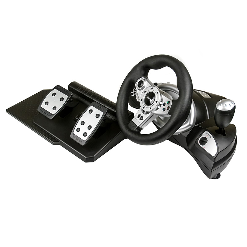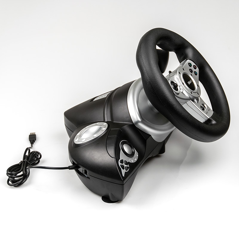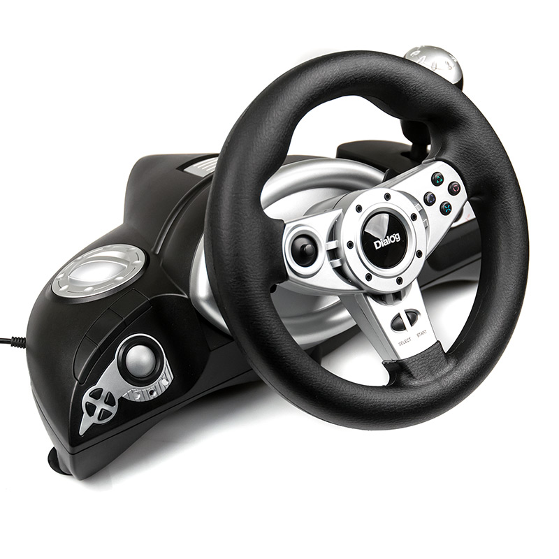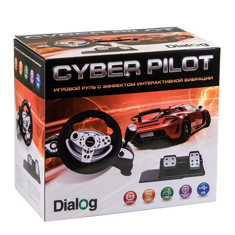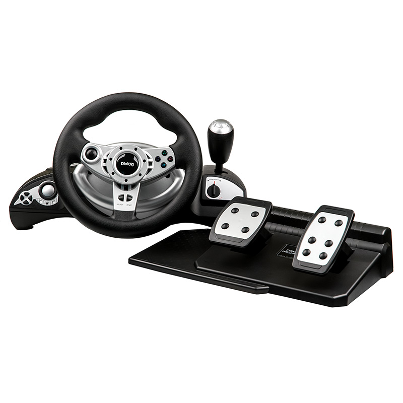 Джойстик-руль Cyber Pilot с эффектом вибрации Dialog GW-155VR| Технические характеристики | | Модель | DIALOG GW-155VR | | Интерфейс | USB | | Органы управления | Рулевое колесо, педальный блок (две педали), трехпозиционный рычаг переключения скоростей. На рулевом колесе: 2 подрулевых лепестка для переключения скоростей, аналоговый стик, 4-кнопочная крестовина управления, крупная кнопка в центре, 2 кнопки Select и Start, четырехкнопочная крестовина в левой части рулевого блока, регулятор чувствительности в правой части рулевого блока | | Вибрация рулевого колеса | Да | | Настройка чувствительности рулевого колеса | Да. Чувствительность настраивается поворотным регулятором на блоке руля | | Диаметр рулевого колеса, мм | 240 | | Угол поворота рулевого колеса, град. | 270 | | Материал | Пластик. Плотное прорезиненное покрытие с текстурой кожи по всему рулевому колесу | | Габаритные размеры руля (В*Ш*Г, мм) | 255*405*370 | | Вес рулевого блока, г | 1850 | | Длина кабеля руля, м | 2±0,1 | | Педали | Блок педалей - газ, тормоз. Педали с двумя степенями свободы - подпружиненный шарнир между педалью и рычагом. Размеры блока (Ш*Г*В) 360*195*125 мм | | Вес блока педалей, г | 850 | | Длина кабеля блока педалей, м | 1,8±0,1 | | Переключение передач | 2 подрулевых рычага + трёххпозиционная ручка переключения передач | | Крепление | Руль - присоски; Съёмная струбцина. Педали - плотные резиновые нескользящие ножки | | Поддержка DirectX | Да. Работает с играми, поддерживающими DirectX на Windows ПК | | Поддержка X-Input | Да. Работает с играми, поддерживающими X-Input на Windows ПК | | Системные требования | IBM PC совместимый компьютер, свободный USB порт, ОС Windows XP, Vista, 7, 8, 8.1, 10, 11 | | Комплектация | Руль, педальный блок, струбцина, руководство пользователя + гарантийный талон, CD диск с программным обеспечением, упаковка | | Код ТНВЭД | 8471607000 | | Гарантийный срок, мес. | 6 | | Cрок службы, мес. | 24 |