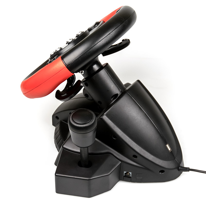 Джойстик-руль E-Racer с эффектом вибрации Dialog GW-225VR| Технические характеристики | | Модель | DIALOG GW-225VR | | Интерфейс | USB | | Органы управления | Рулевое колесо, педальный блок (две педали), двухпозиционный рычаг переключения скоростей. На рулевом колесе: 2 подрулевых лепестка для переключения скоростей, 8-позиционная навигационная крестовина, 4-кнопочная крестовина управления, 7 кнопок в центре, 2 кнопки в верхней части рулевого колеса | | Вибрация рулевого колеса | Да | | Диаметр рулевого колеса, мм | 220 | | Угол поворота рулевого колеса, град. | 200 | | Материал | Пластик. Твёрдые красные резиновые вставки по бокам рулевого колеса | | Габаритные размеры руля (В*Ш*Г, мм) | 255*255*255 | | Вес рулевого блока, г | 1160 | | Длина кабеля руля, м | 2±0,1 | | Педали | Блок педалей - газ, тормоз. Размеры блока (Ш*Г*В) 190*180*90 мм | | Вес блока педалей, г | 350 | | Длина кабеля блока педалей, м | 1,8±0,1 | | Переключение передач | 2 подрулевых рычага с мягким ходом без клика + двухпозиционная ручка переключения передач | | Крепление | Присоски (интегрированные), 4 шт ⋄ 47мм | | Поддержка DirectX | Да. Работает с играми, поддерживающими DirectX на Windows ПК | | Поддержка X-Input | Да. Работает с играми, поддерживающими X-Input на Windows ПК | | Поддержка PlayStation3 | Да. Подключается к PlayStation 3 | | Поддержка PlayStation4 | Да. Подключается к PlayStation 4 (нужен оригинальный геймпад) | | Поддержка X-Box One | Да. Подключается к X-Box One (нужен оригинальный геймпад) | | Поддержка X-Box 360 | Да. Подключается к X-Box 360 (нужен оригинальный проводной геймпад. Руль не работает с X-BOX 360 через беспроводной геймпад) | | Поддержка Nintendo Switch | Да. Подключается к Nintendo Switch | | Поддержка Android | Да. Подключается к устройствам с ОС Android, допускающим подключение джойстиков | | Системные требования | IBM PC совместимый компьютер, свободный USB порт, ОС Windows XP, Vista, 7, 8, 8.1, 10, 11 | | Комплектация | Руль, педальный блок, руководство пользователя + гарантийный талон, CD диск с программным обеспечением, кабель MicroUSB-USB для подключения геймпадов, упаковка | | Код ТНВЭД | 9504500009 | | Гарантийный срок, мес. | 6 | | Cрок службы, мес. | 24 |