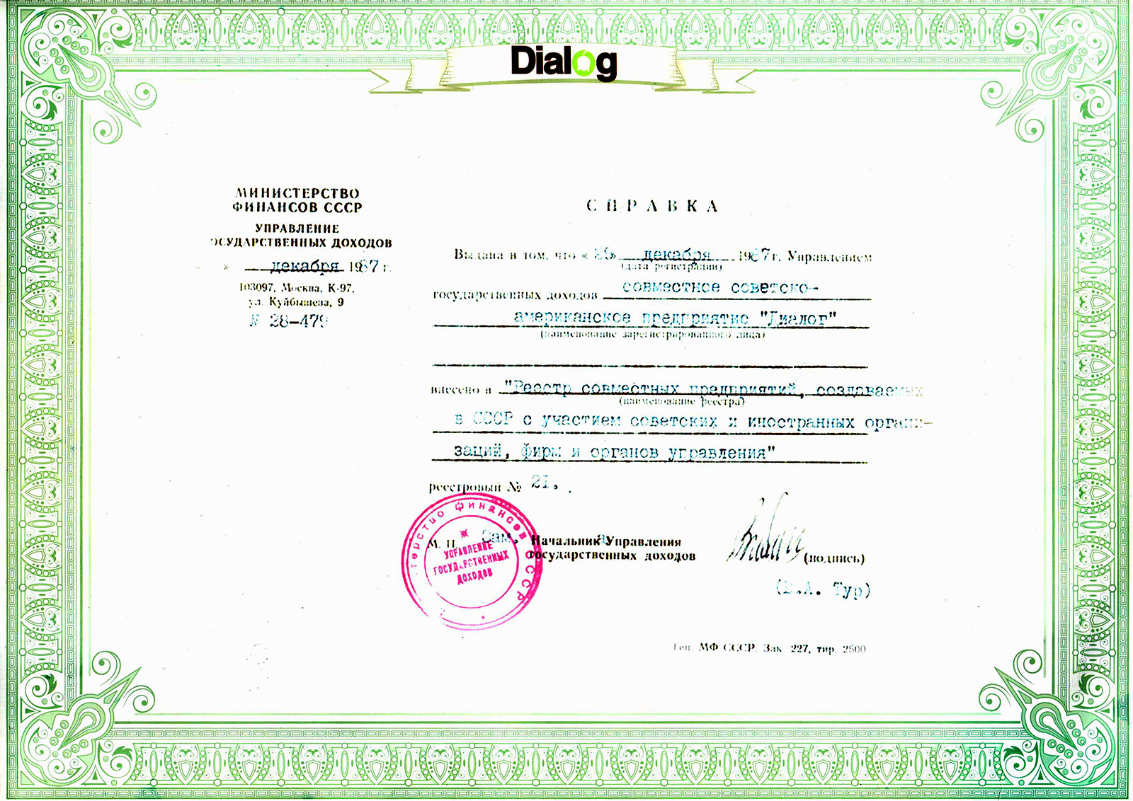 Мы стремимся к постоянному обновлению модельных рядов, улучшая дизайн и технические параметры изделий, предлагая качественные товары, созданные с использованием перспективных технологий и материалов. Мы стараемся формировать наш ассортимент исходя из следующих принципов: товары должны быть надёжные, красивые и доступные. Краткая история компании: ЗАО "ДиалогИнвест" зарегистрировано в 1988 году в Санкт-Петербурге как совместное предприятие под номером 7. До 1992 года являлось филиалом московского советско-американского СП "Диалог", зарегистрированного в 1987. Далее самостоятельное предприятие с участием иностранного капитала. С 1999 года и по настоящее время компания сосредоточила свои усилия на развитии и укреплении стратегического направления дистрибьюции мультимедийных товаров под собственной торговой маркой Dialog.